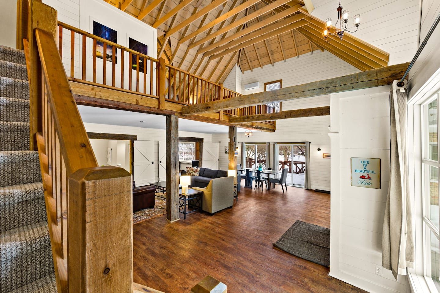 Introducing the Nordica Loft, a stylish retreat located above the garage of the main home. Located in the heart of Egg Harbor, this separate apartment offers 2 bedrooms and one bathroom, providing a private and comfortable space. Connected to the main house by an upper breezeway and deck, the loft is rented separately, ensuring privacy and exclusivity. Experience contemporary elegance with modern furnishings, fast WiFi, a well-equipped kitchenette, and a cozy seating area.