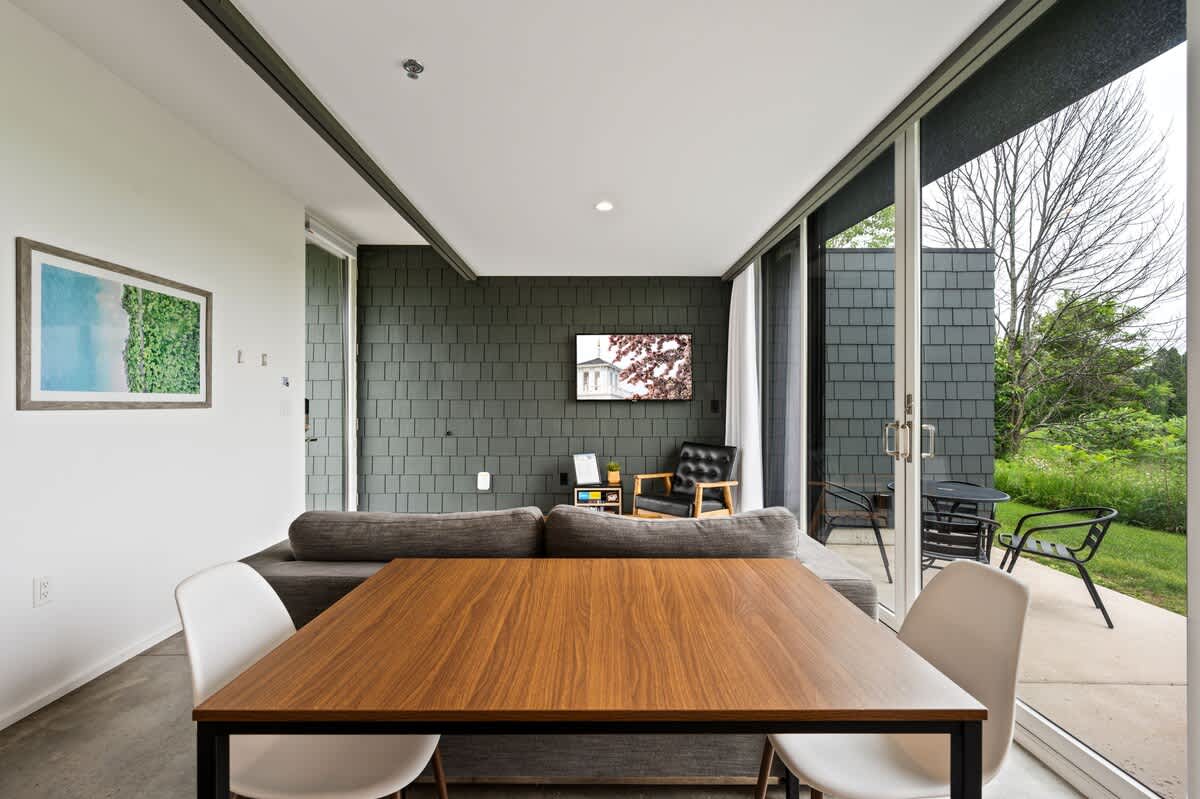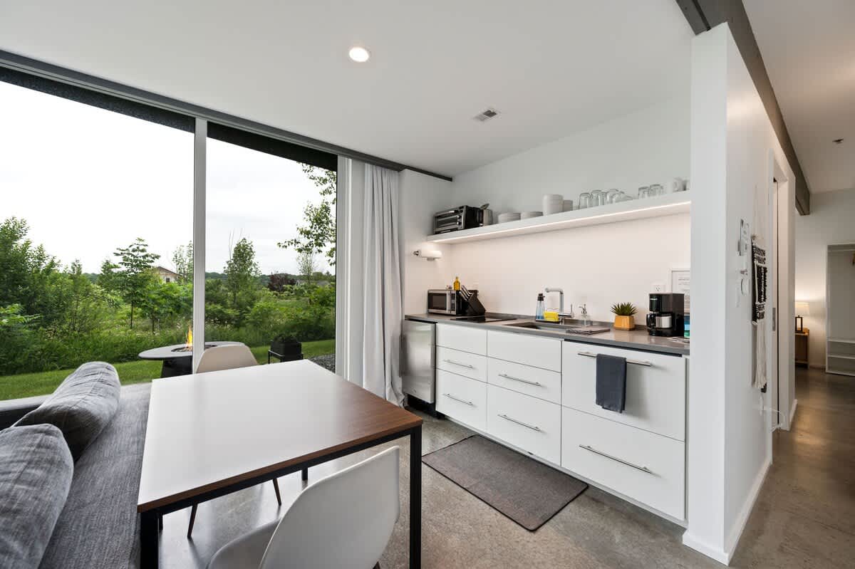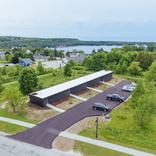 We built these rentals to give visitors to Door County something different. Each 1-bedroom/1-bathroom apartment features floor-to-ceiling windows, heated floors, a small kitchen, a king sized bed and a queen-sized sleeper sofa. They're centrally located within walking distance of all that Egg Harbor has to offer.