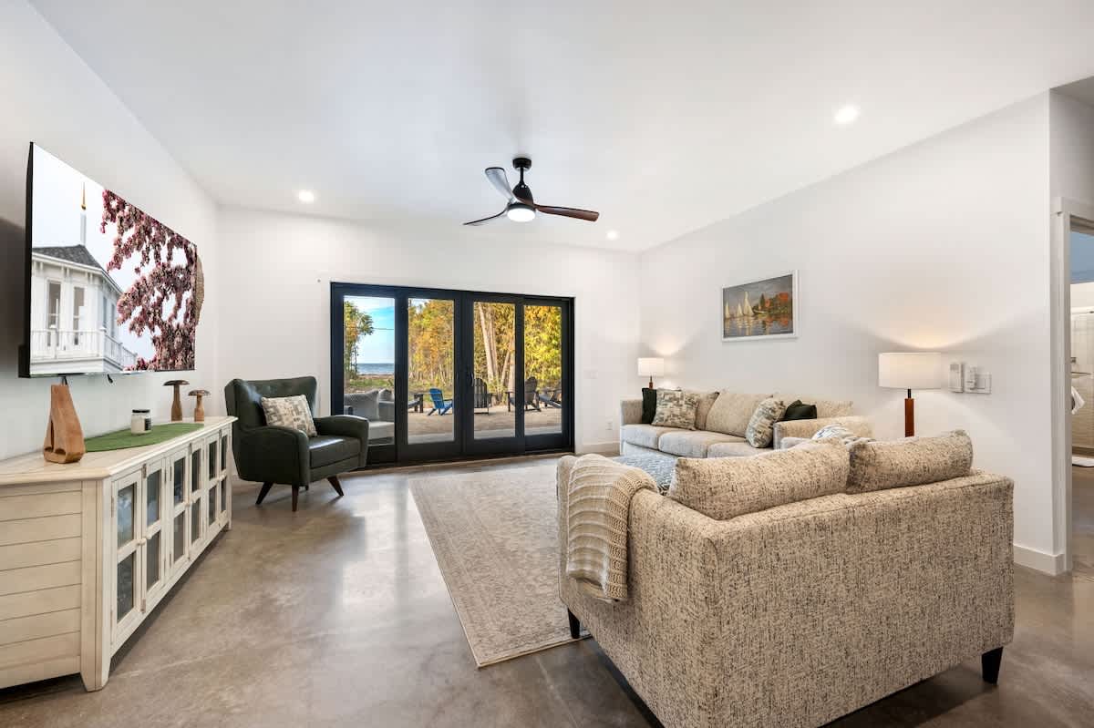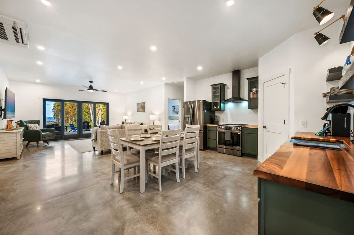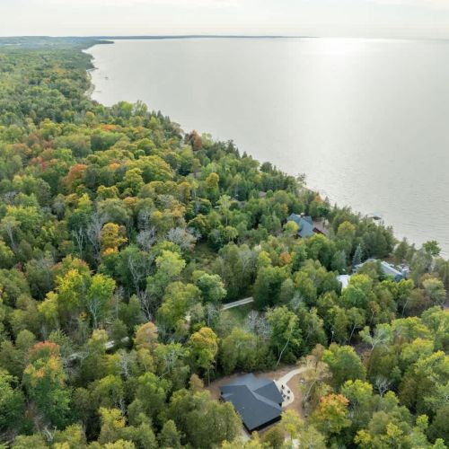 Welcome to Cedar Cove, a serene 4-bedroom, 2-bathroom retreat nestled in the woods of Egg Harbor, WI. This modern, wheelchair-accessible home offers a perfect escape for families, couples, or friends looking for a peaceful Door County getaway. With stunning views of Green Bay and 100 feet of private shoreline, Cedar Cove blends the beauty of nature with the comforts of modern living.