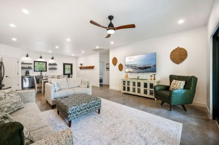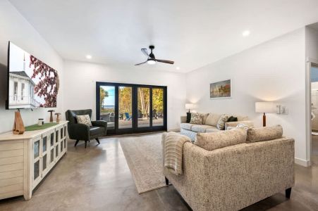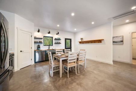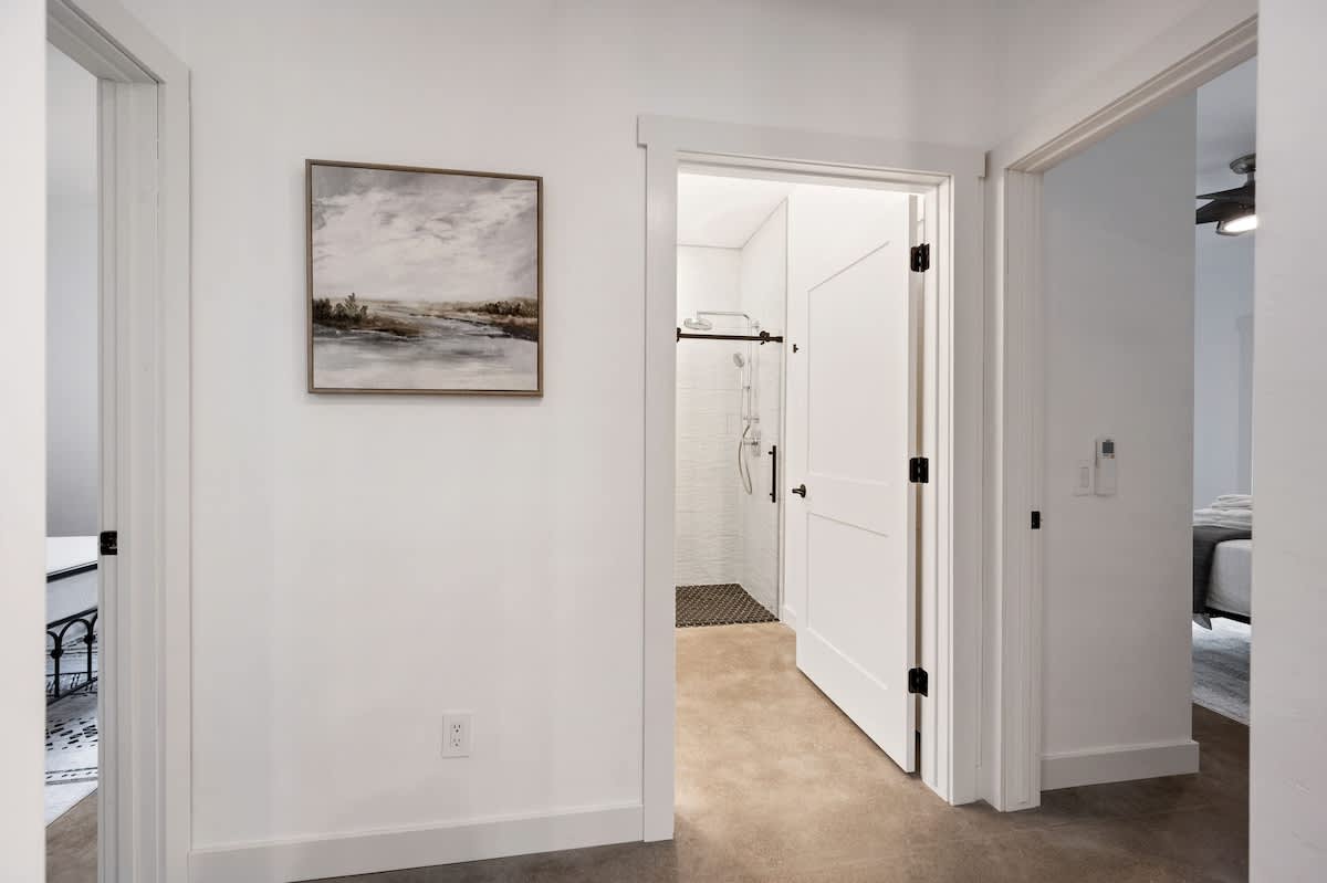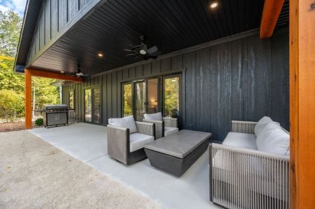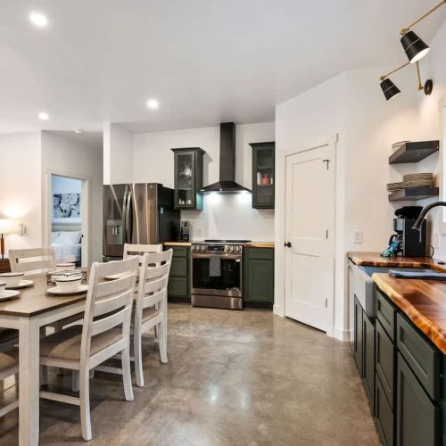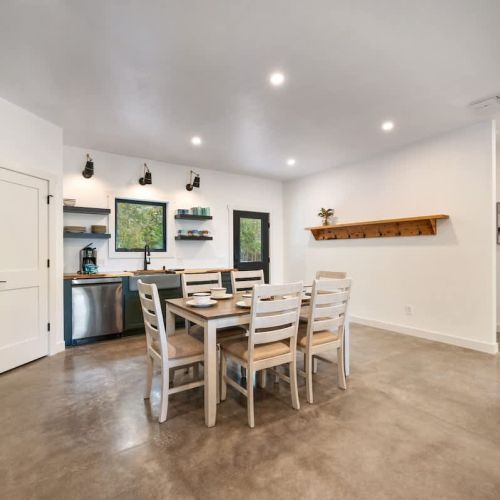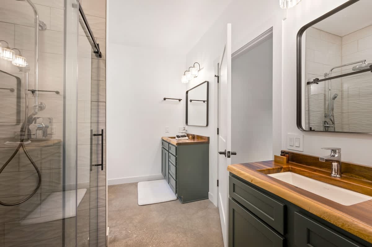 The open-concept living space is perfect for gathering after a day of exploring. With high-end finishes, comfortable seating, and large windows that frame the surrounding woods, this space invites you to unwind. Whether you're watching your favorite shows on the smart TV or enjoying a cozy evening by the fire, Cedar Cove creates a welcoming atmosphere for all.