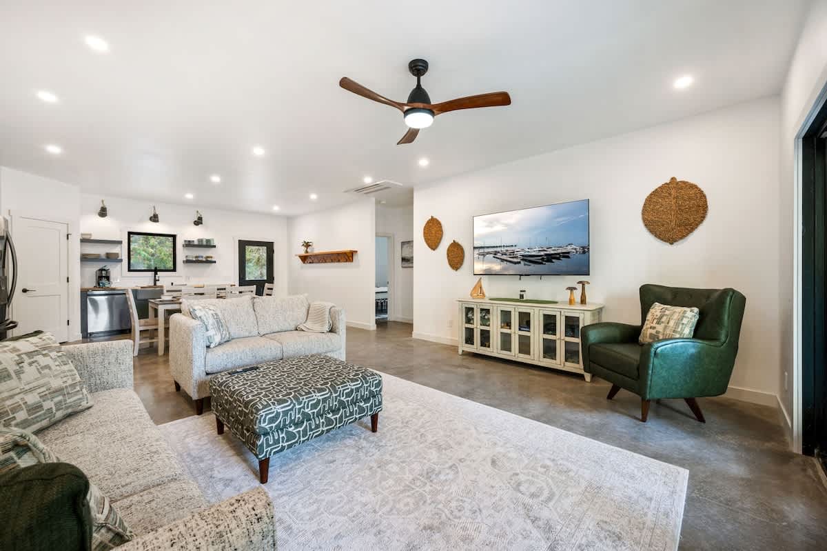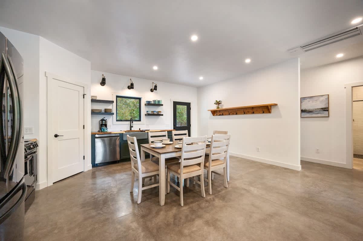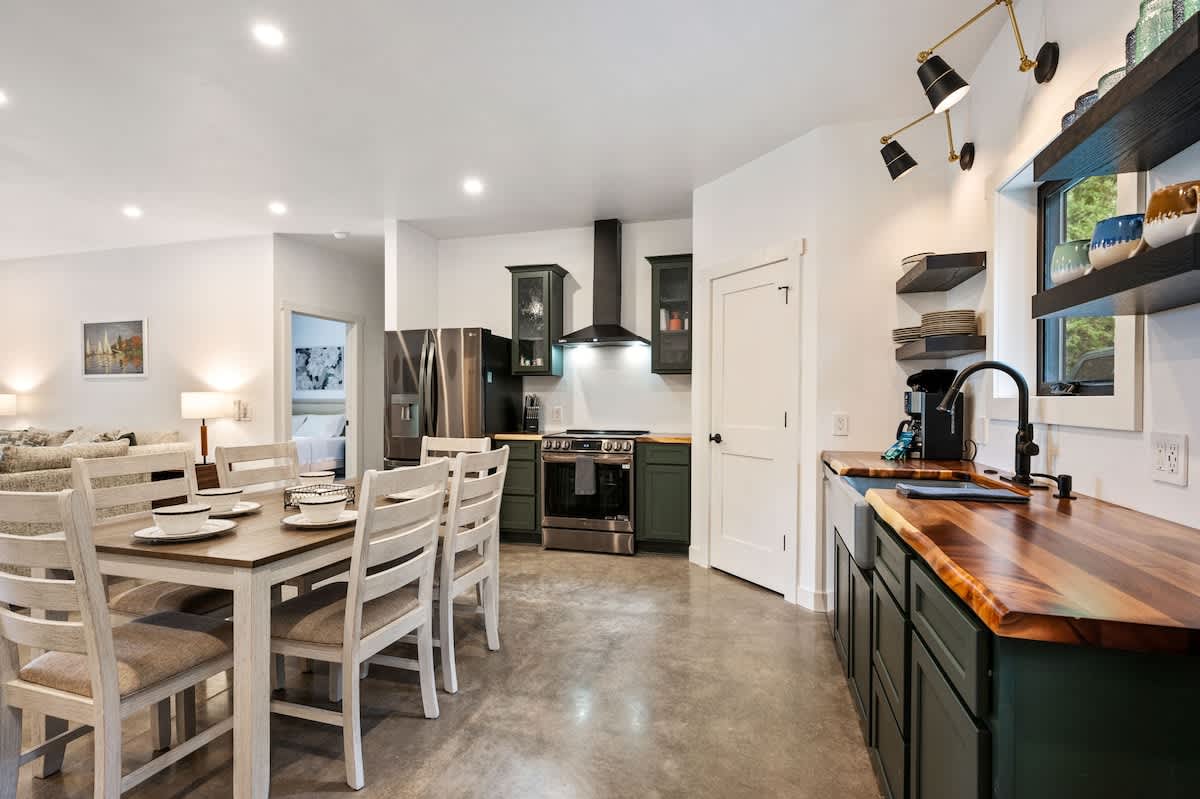 The fully equipped kitchen makes cooking a pleasure, whether you're preparing a quick breakfast or a gourmet dinner. The adjacent dining area provides ample seating, or take your meal outside to the comfortable patio, where you'll find a BBQ grill and outdoor seating surrounded by the tranquility of nature.
