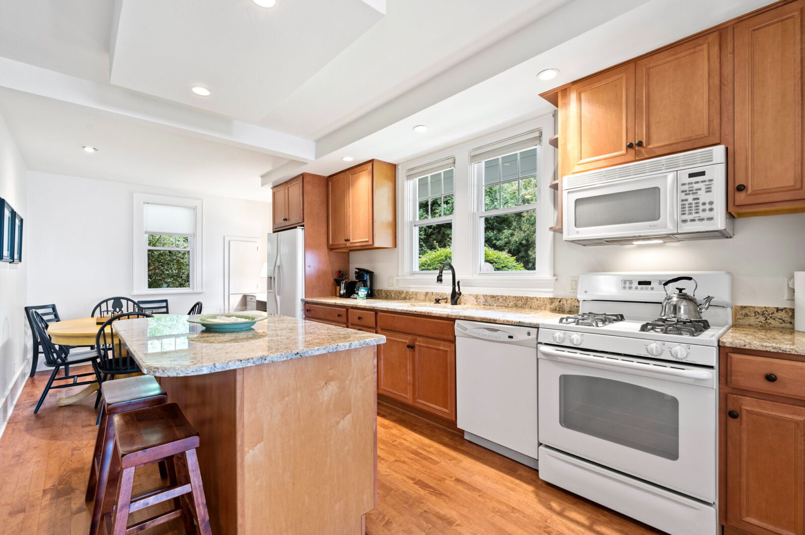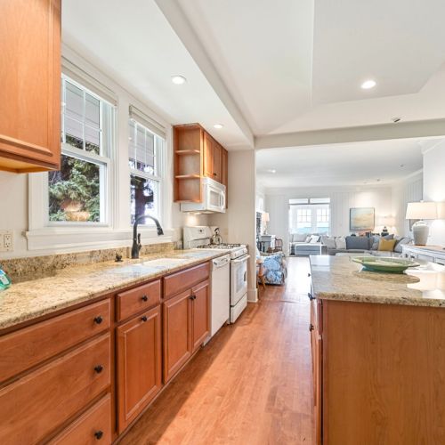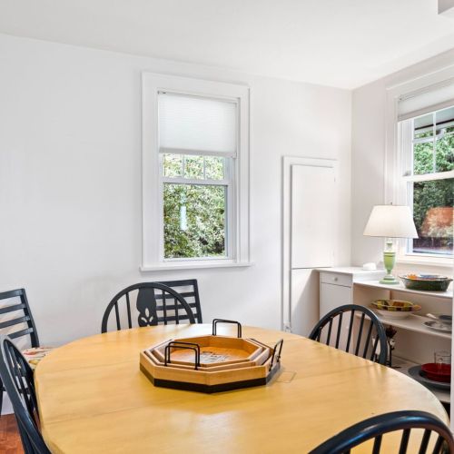 Inside, you’ll find a warm and inviting living space featuring an indoor fireplace-perfect for curling up with a good book or enjoying a quiet night in. The large, well-equipped kitchen offers everything you need for easy meals or leisurely dinners at home. Just off the main living area, the bright and airy sun porch invites you to sip your morning coffee as the light filters through the trees or spend a peaceful afternoon lost in a book.