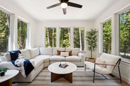 Four-Season Sunroom with Fireplace – Cozy up with a book or a glass of wine, surrounded by nature.