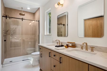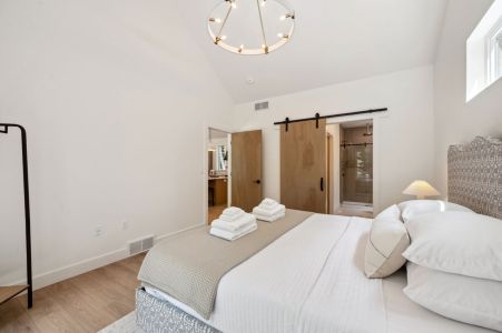 Primary Bedroom – King bed + en-suite bathroom with rainfall Kohler shower