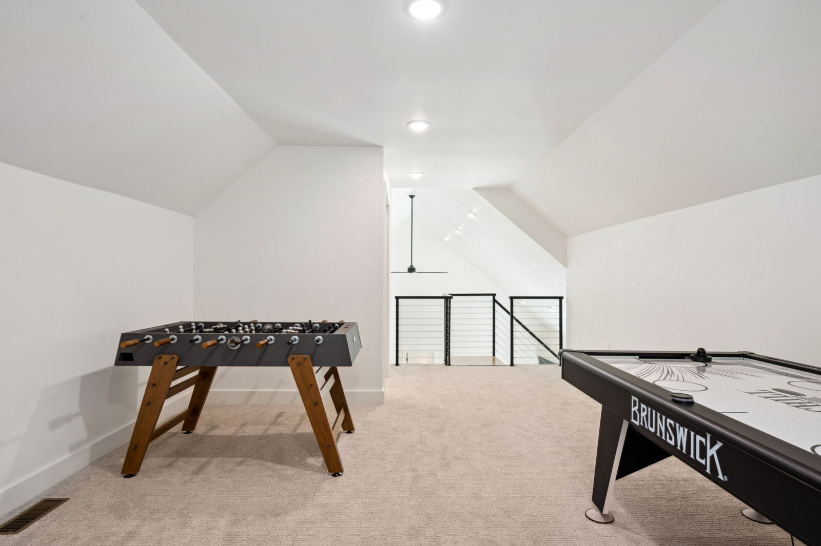 Loft Game Room – Challenge your group to a game of foosball or air hockey, or relax on the sleeper sofa.