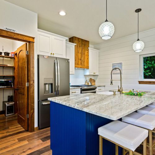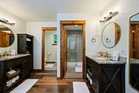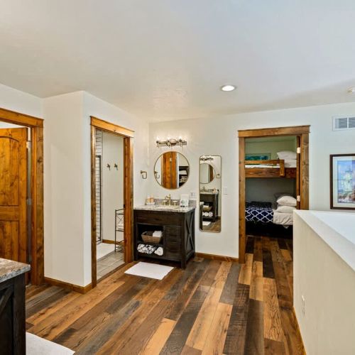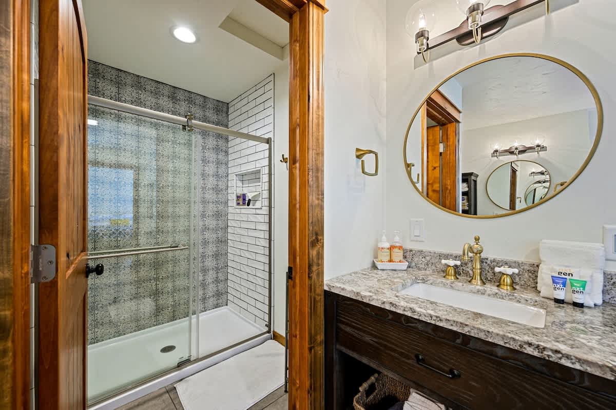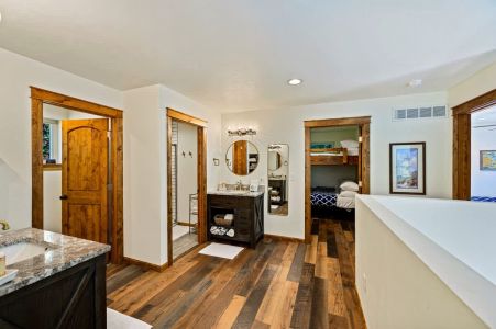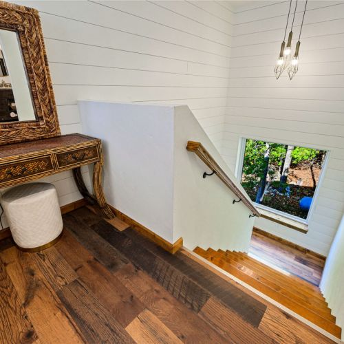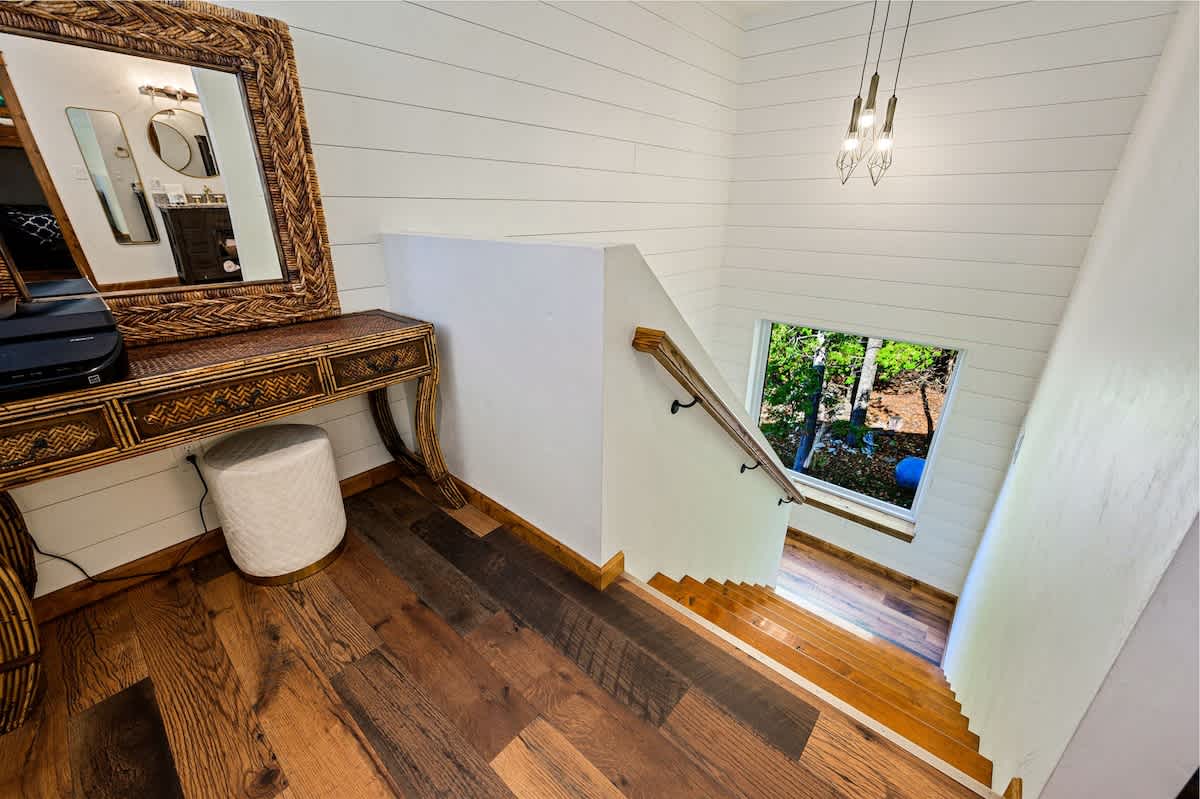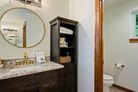 For added convenience, there are a total of two bathrooms in the cottage. There's a full bathroom on the main level, ensuring easy accessibility, and an additional bathroom on the upper level, each offering plenty of vanity space for getting ready in the morning.