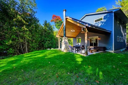 Discover the Door County Cottage Retreat in Egg Harbor, a 2-bedroom, 2-bathroom haven that accommodates up to 10 guests. Enjoy the indoor fireplace, a sprawling patio with a roaring outdoor fireplace overlooking the serene woods, and modern amenities including a washer and dryer, full kitchen, and spacious dining area in the heart of the charming Village of Egg Harbor.