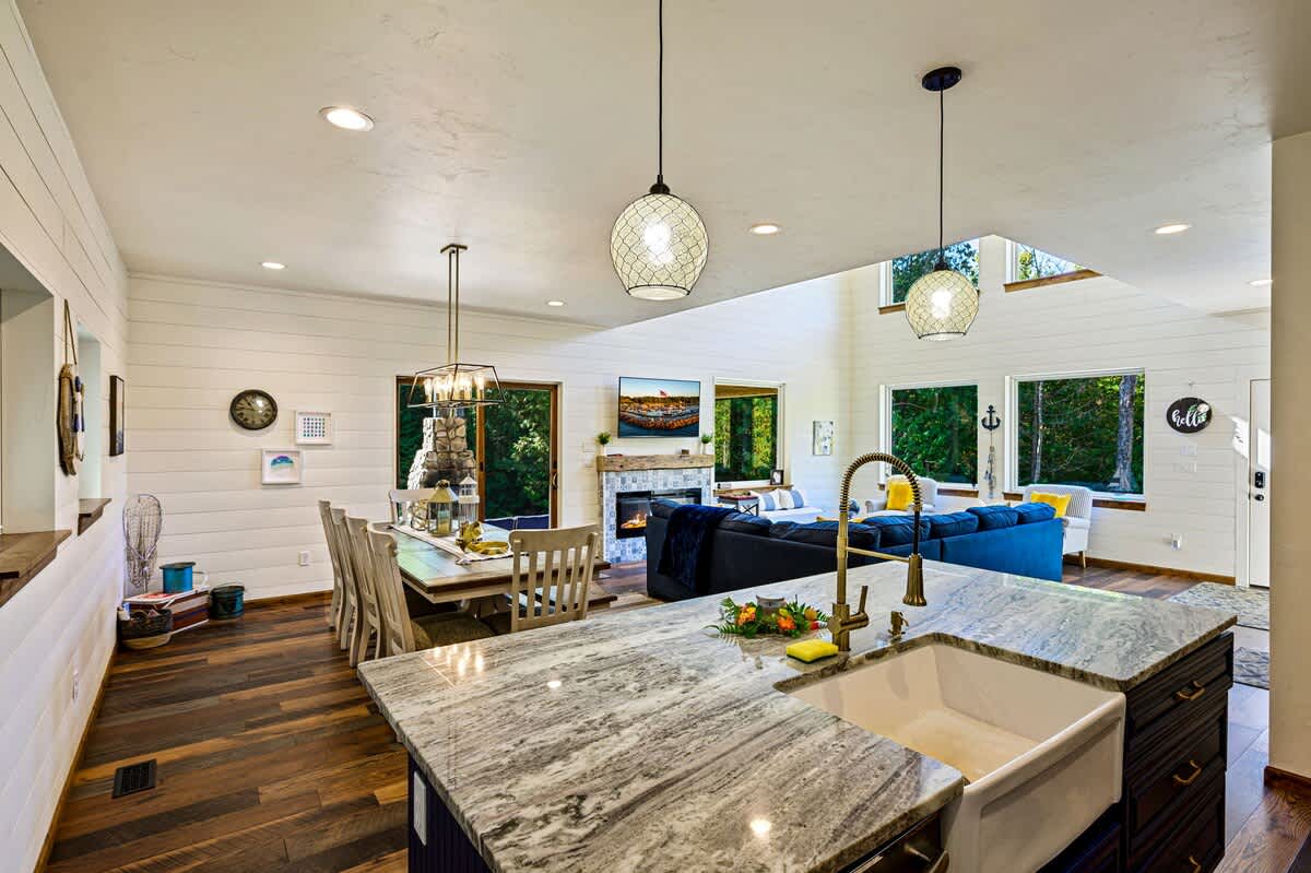 Beautiful place to stay! It has a nice patio including a fireplace, large living room area, and very roomy for 8+ people. Highly recommend staying at this airbnb.