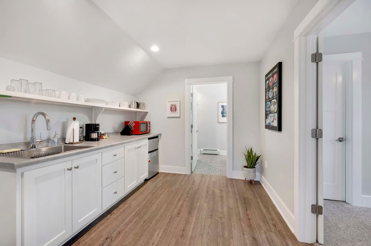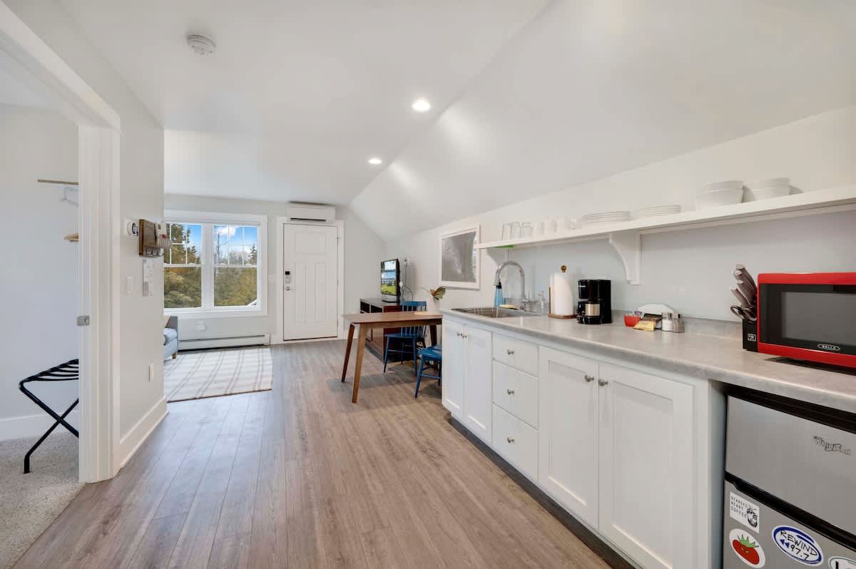 The kitchenette is fully stocked with everything you need, including a mini-fridge/freezer, toaster, microwave, large sink, kitchen utensils, Keurig, and snacks. You'll sleep soundly on a brand new queen-sized bed with a memory foam mattress from Tuft & Needle. The bathroom has beautiful new fixtures, plush linens, and a shower with great water pressure. The WiFi is fast, and the LED TV comes with a Chromecast for your favorite streaming services, so you can unwind and watch all your favorite shows and movies after a day of exploring the peninsula.