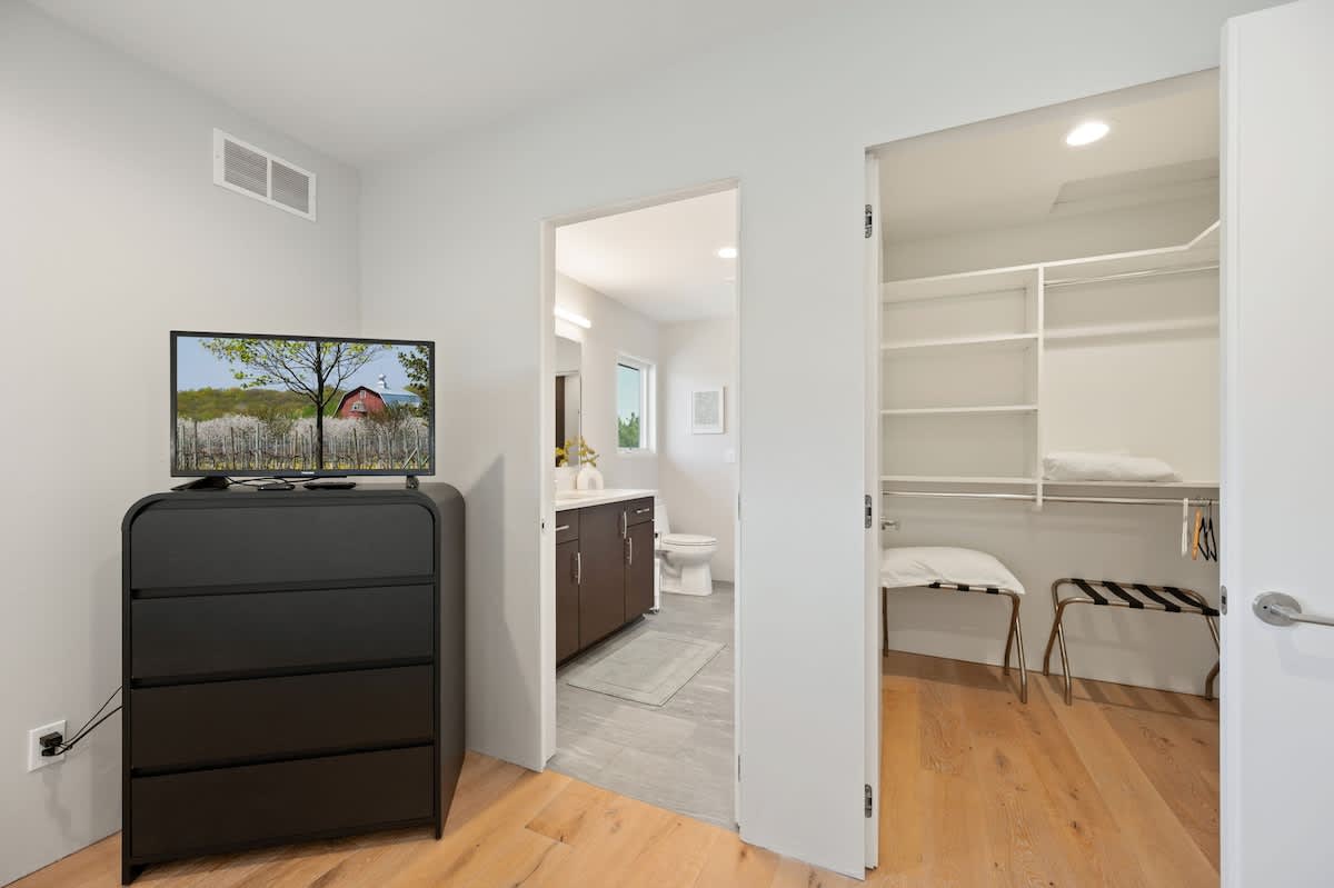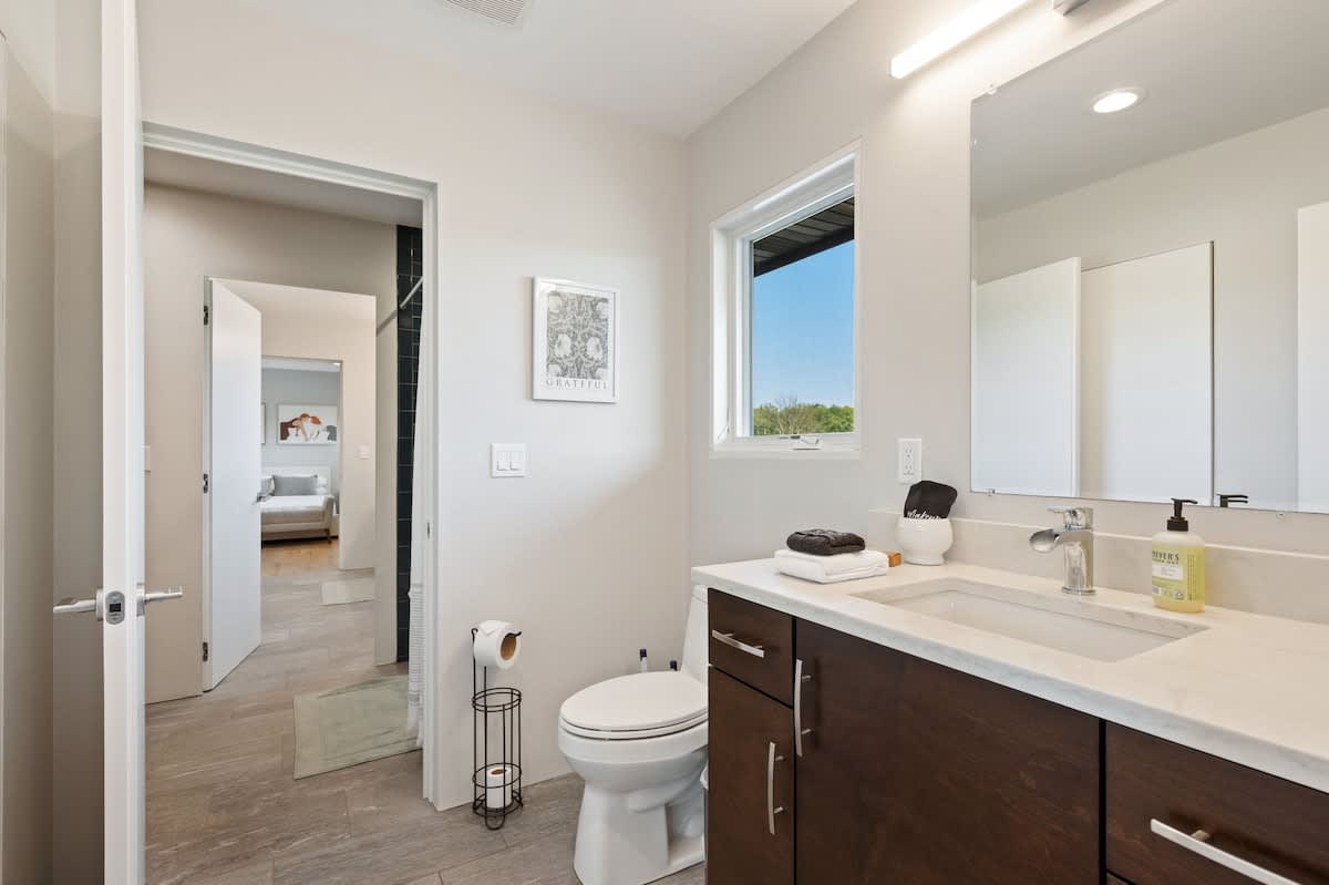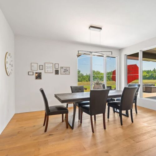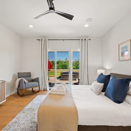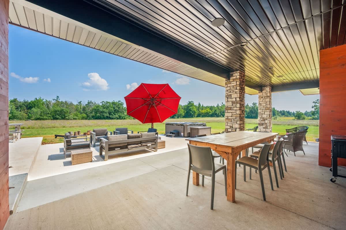 A gorgeous, spacious modern prairie-style home with 5 bedrooms, 3.5 bathrooms, and room for up to 8 guests. This property is perfect for families or groups of friends looking for a high-end Door County escape with plenty to do right on site. Enjoy a large open backyard, home theater, hot tub, home gym, and more—while still being within a short drive of restaurants, shops, and local attractions.
