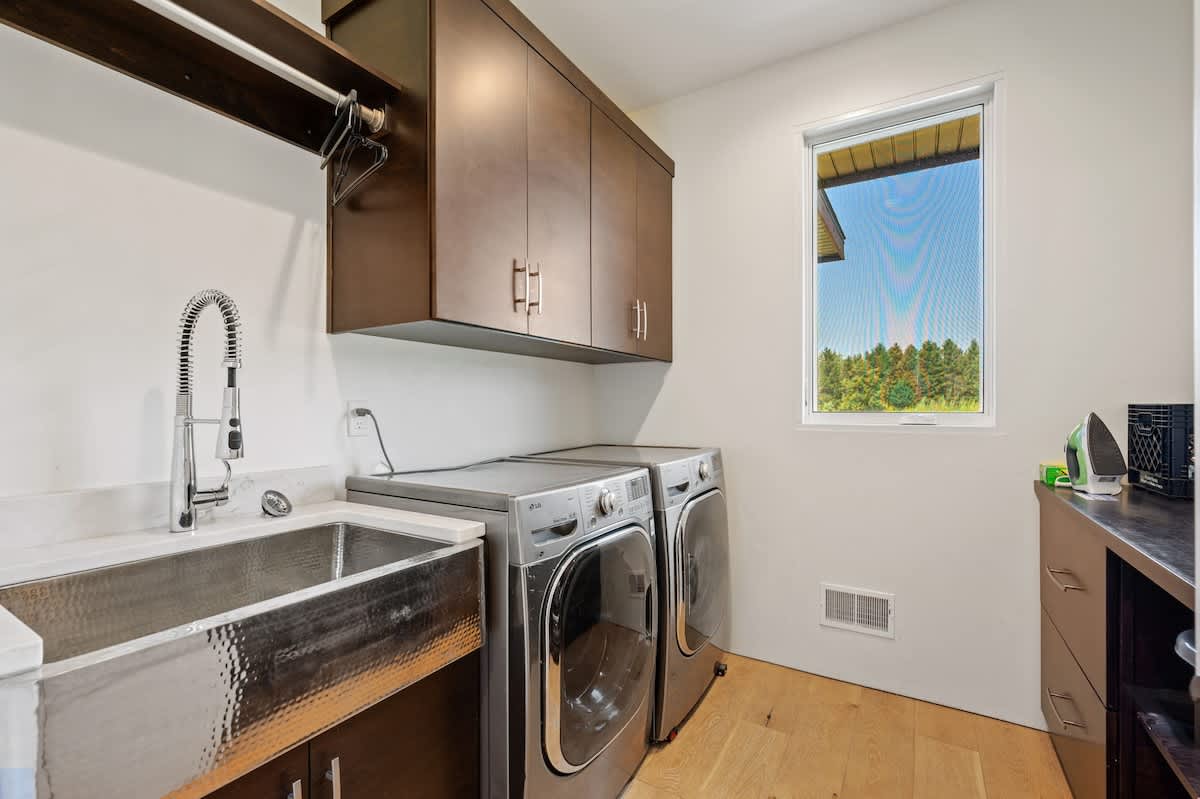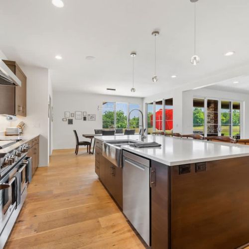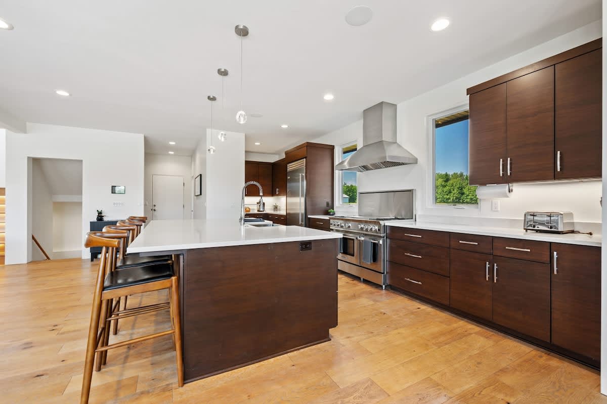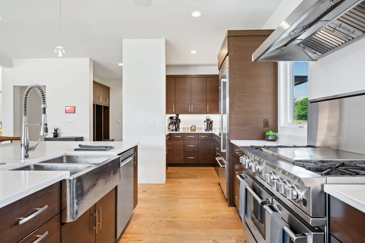 The chef’s kitchen is fully equipped with high-end appliances, generous counter space, and all the essentials—perfect for everything from family meals to holiday feasts.