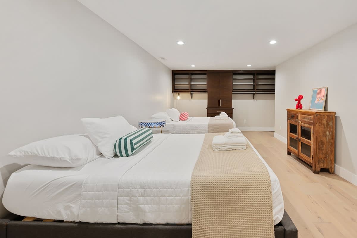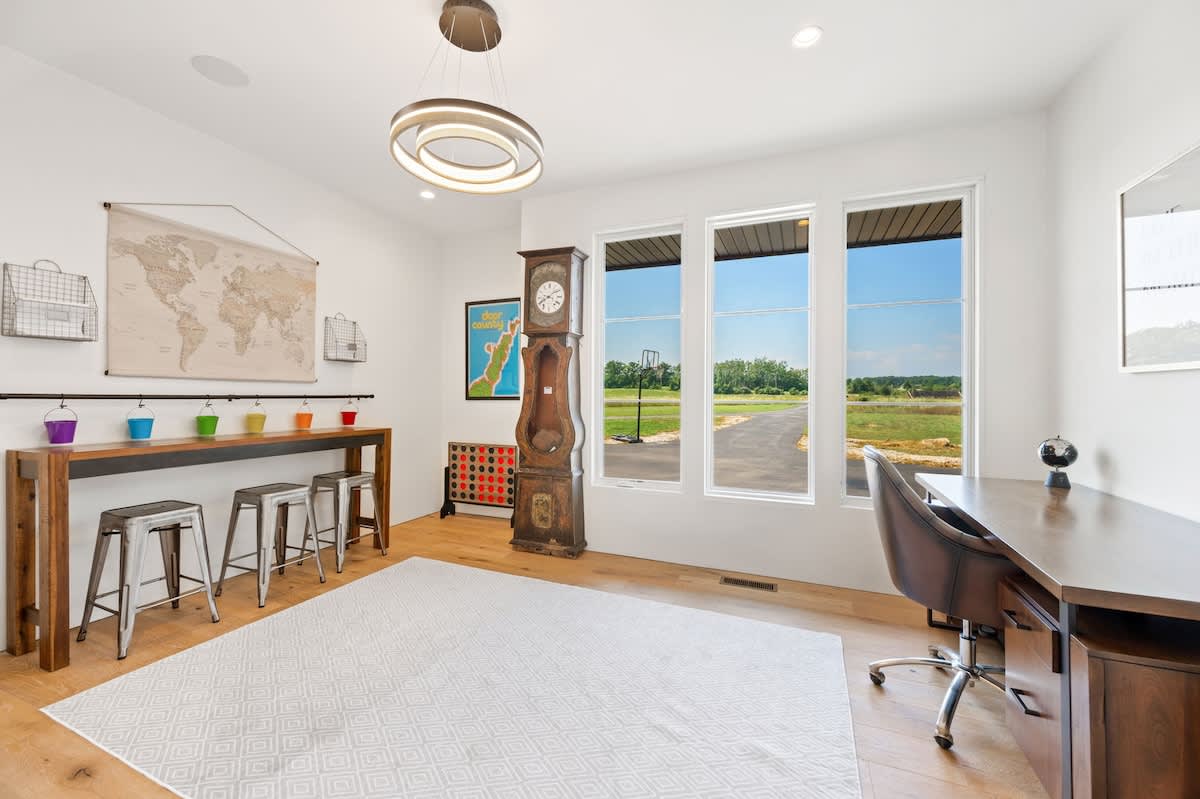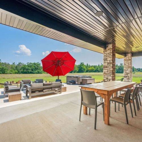 Entertainment is endless: soak in the hot tub under star-filled skies, work out in the home gym, shoot hoops on the outdoor basketball hoop, or enjoy yard games like cornhole.
