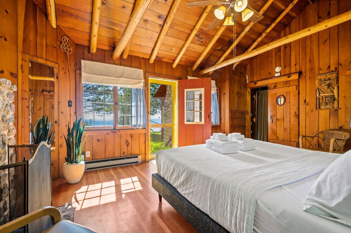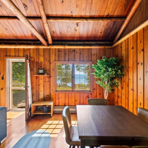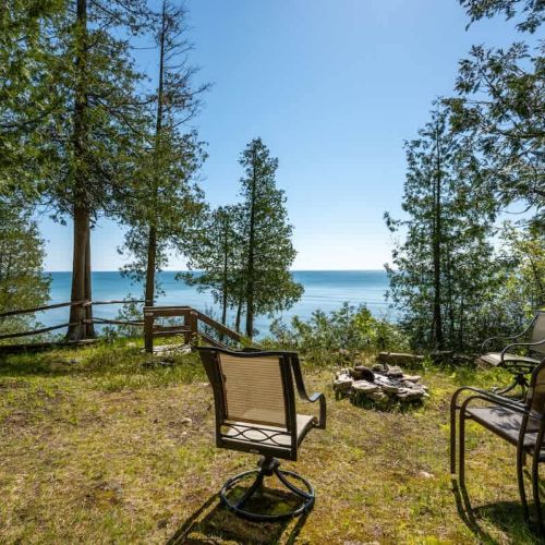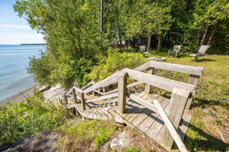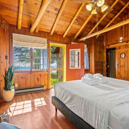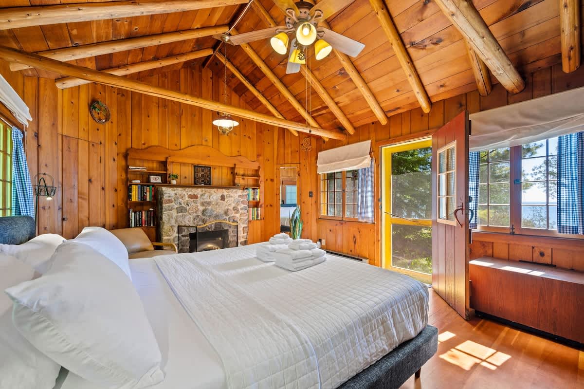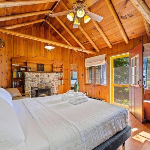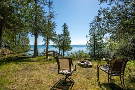 Embrace the warm and welcoming atmosphere of this idyllic haven, designed to help you unwind and rediscover tranquility. The charming cedar cabin boasts breathtaking views of Lake Michigan's sunrise, setting the stage for an unforgettable stay. Enjoy the rustic charm of the cabin's log-beam ceiling and wooden floors, while snuggling up next to one of the two fireplaces – ideal for romantic escapes between May and September.