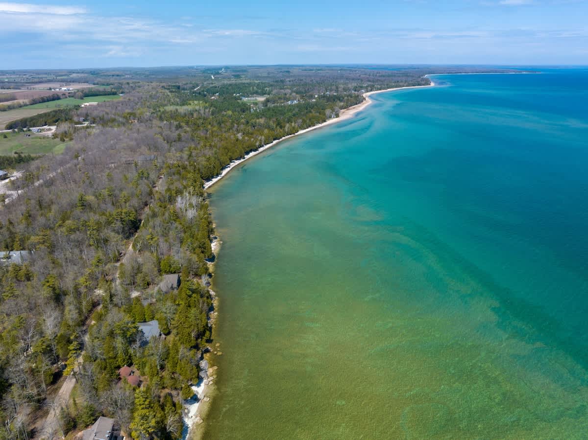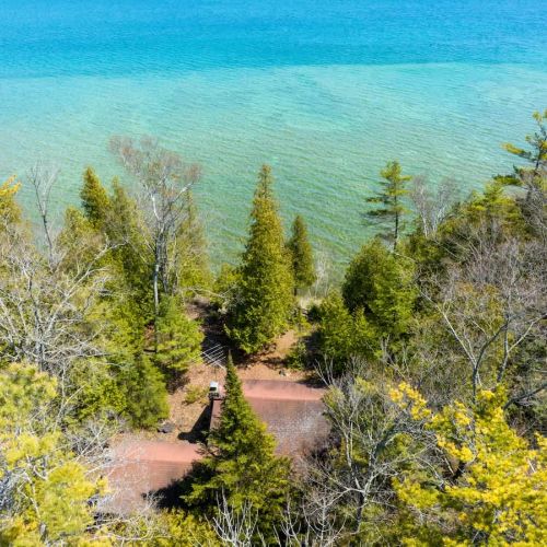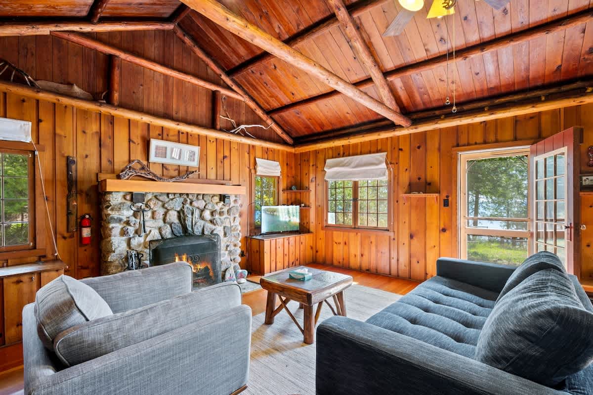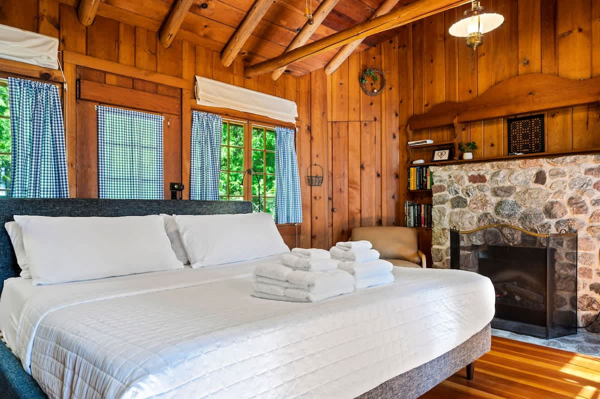 Embrace the warm and welcoming atmosphere of this idyllic haven, designed to help you unwind and rediscover tranquility. The charming cedar cabin boasts breathtaking views of Lake Michigan's sunrise, setting the stage for an unforgettable stay. Enjoy the rustic charm of the cabin's log-beam ceiling and wooden floors, while snuggling up next to one of the two fireplaces – ideal for romantic escapes between May and September.