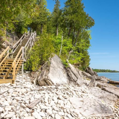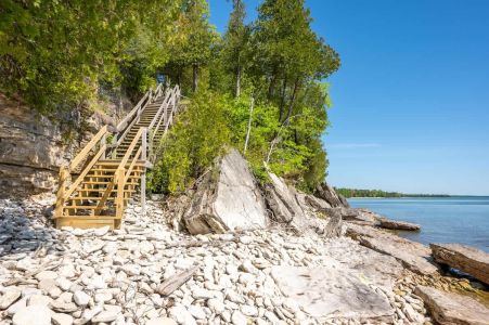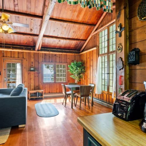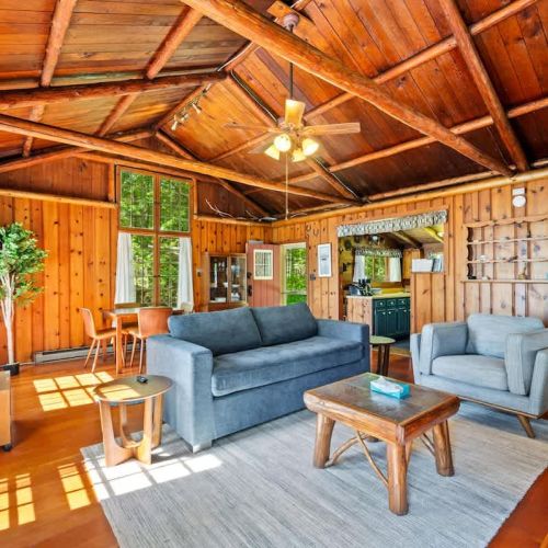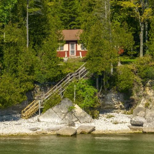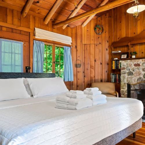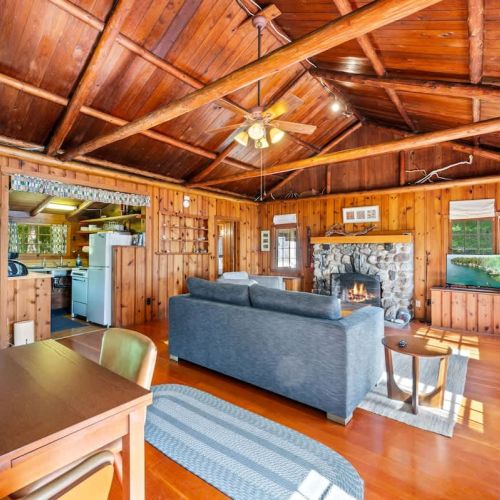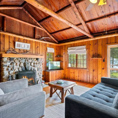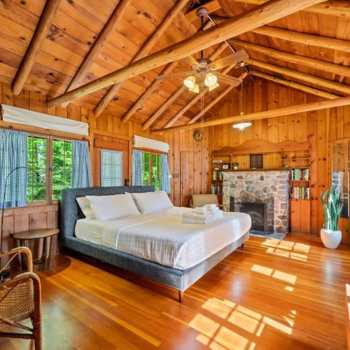 Embrace the warm and welcoming atmosphere of this idyllic haven, designed to help you unwind and rediscover tranquility. The charming cedar cabin boasts breathtaking views of Lake Michigan’s sunrise, setting the stage for an unforgettable stay. Enjoy the rustic charm of the cabin’s log-beam ceiling and wooden floors, while snuggling up next to one of the two fireplaces – ideal for romantic escapes between May and September.