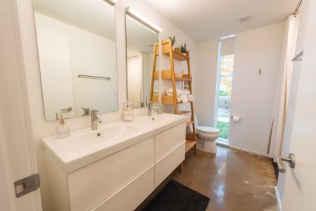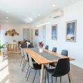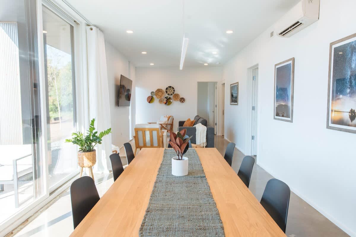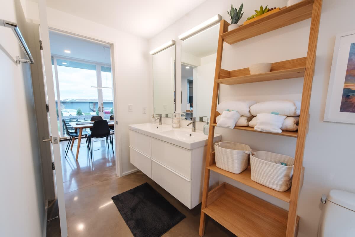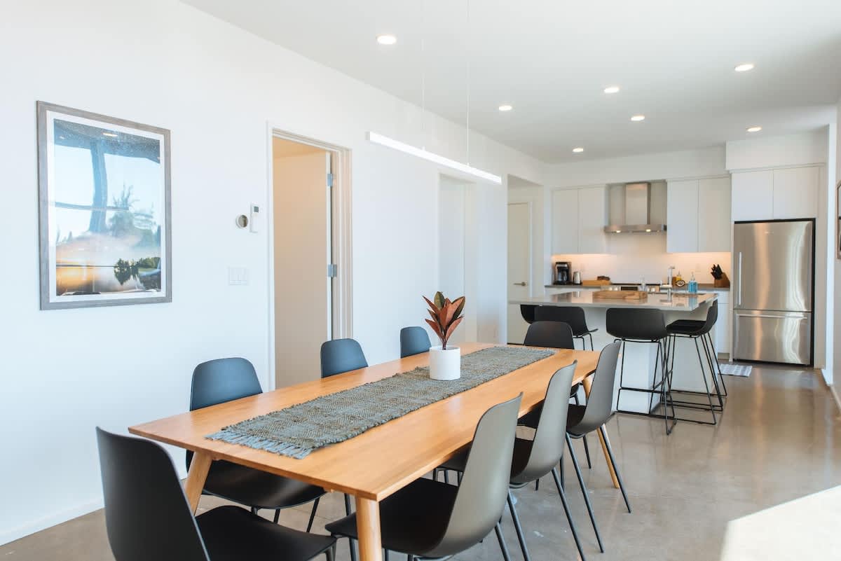 The Flats on Church Street – #201 and #202 are a 6-bedroom, 4-bathroom complex featuring two full kitchens and two private patios. This listing includes both units of a duplex and can accommodate up to 16 guests. We are centrally located within walking distance of all of Downtown Egg Harbor, and incredible entertainment, shopping and dining options. Experience modern comfort in the Heart of Egg Harbor, with responsive hosts and clear check-in/check-out instructions.