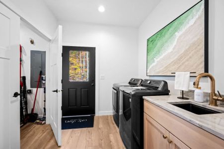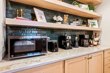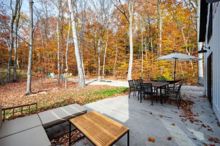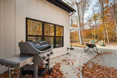 The fully appointed kitchen is ready for everything from quick snacks to gourmet meals. Enjoy a fresh cup of coffee from the coffee/drink bar, dine at the spacious table, or step outside to the patio for al fresco dining amidst the trees. The outdoor space features a fire pit, gas grill, and clover-covered side yard with outdoor games like bag toss and croquet.