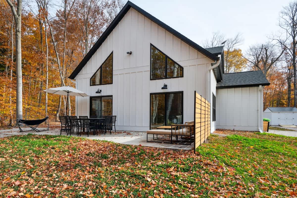 Nestled on over 2 acres in the peaceful woods of Ellison Bay, WI, Folklore Woods is a newly built 4-bedroom, 2-bathroom pet-friendly retreat that celebrates both the beauty of Door County and a comfortable, accessible design. Located just a short drive from Sister Bay and within walking distance to Garrett Bay, where you can explore underwater shipwrecks and scenic shorelines, Folklore Woods is your perfect base for relaxation and adventure.