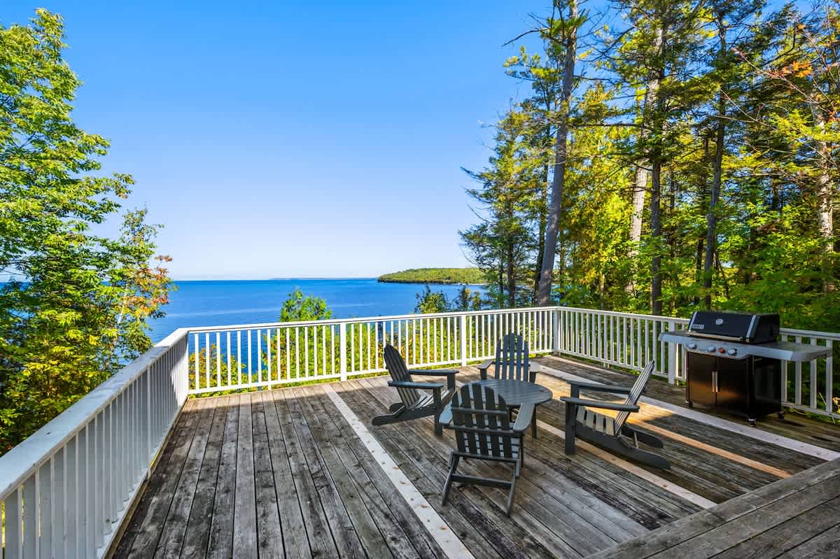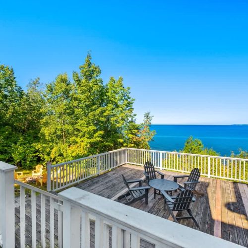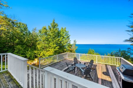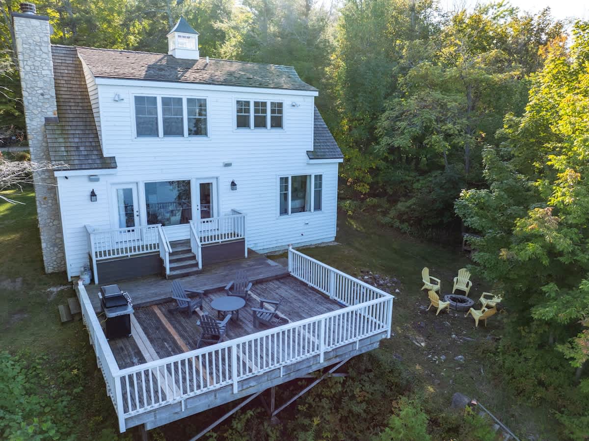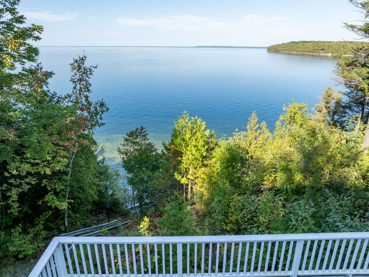 Step outside to enjoy the expansive back deck overlooking Garrett Bay. The outdoor fire pit provides a gathering place for s’mores and stargazing, while the surrounding acreage ensures peace, privacy, and immersion in Door County’s natural beauty.