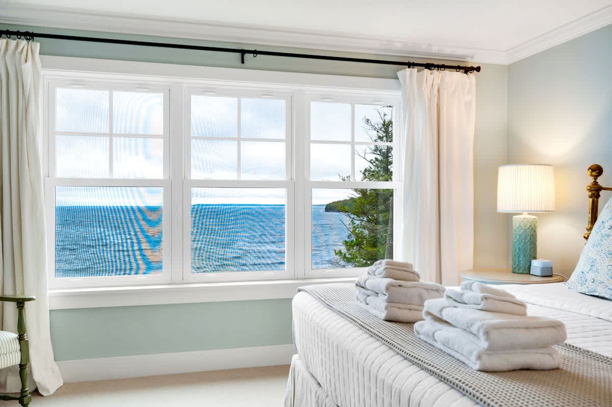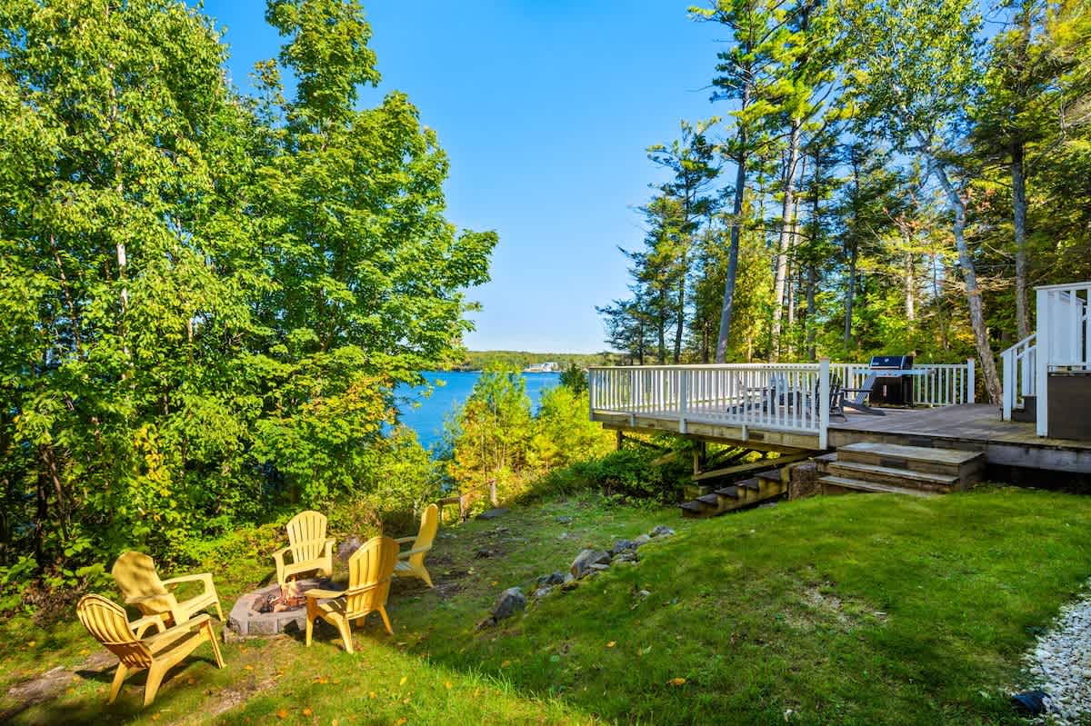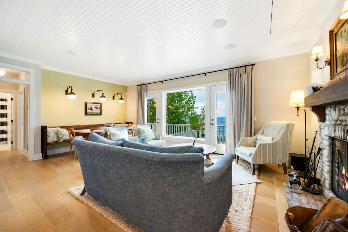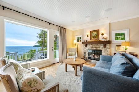 Step outside to enjoy the expansive back deck overlooking Garrett Bay. The outdoor fire pit provides a gathering place for s’mores and stargazing, while the surrounding acreage ensures peace, privacy, and immersion in Door County’s natural beauty.