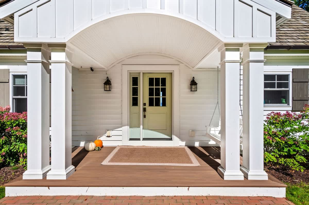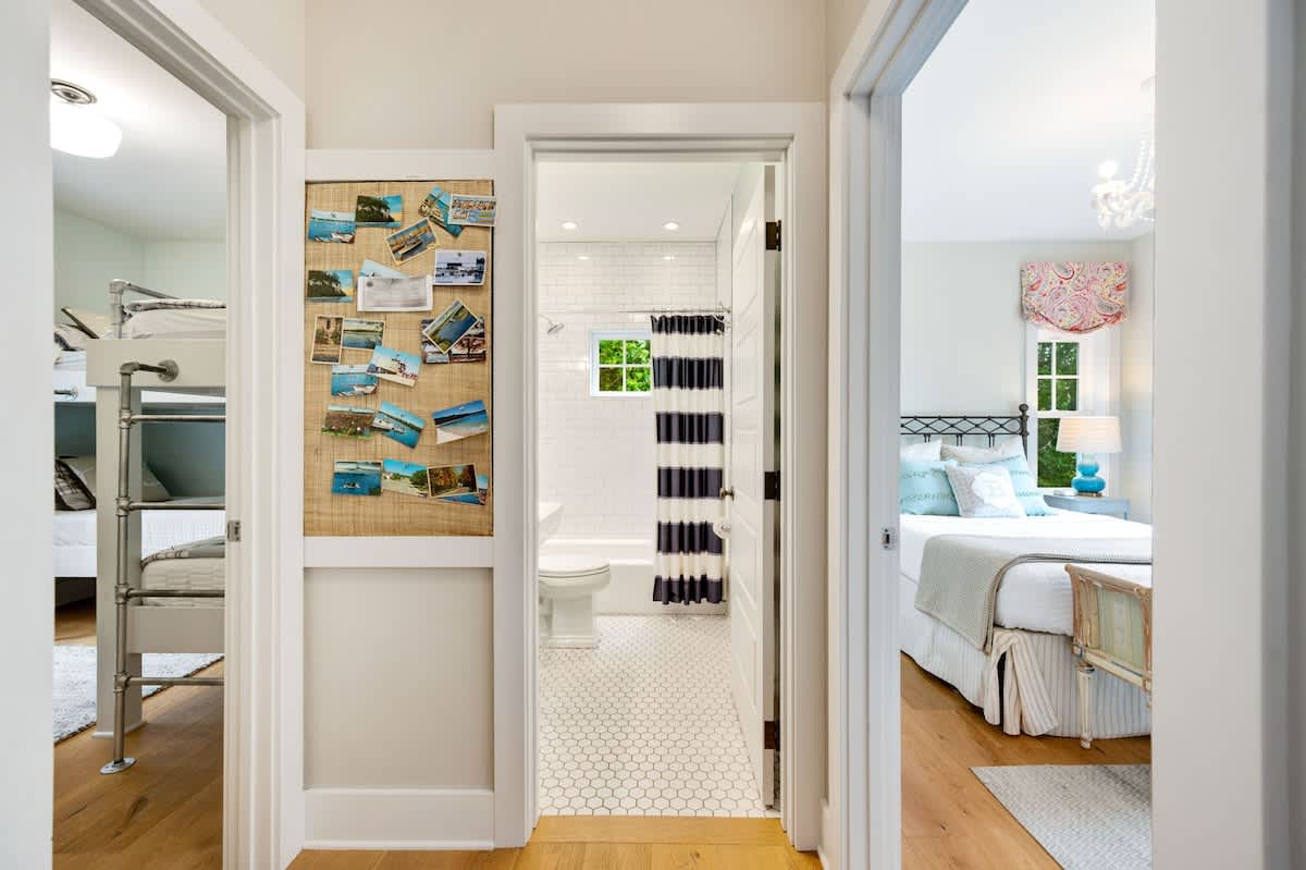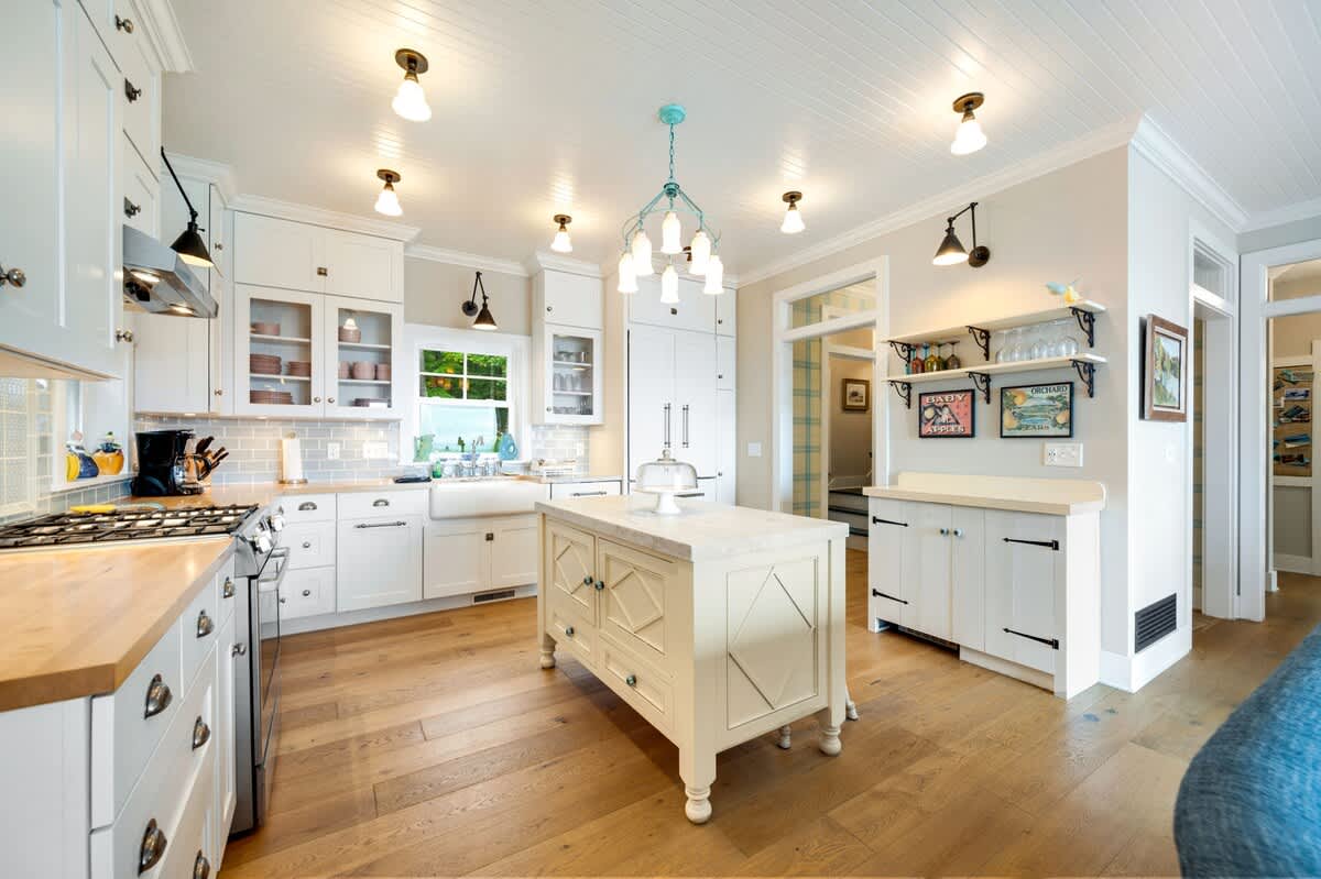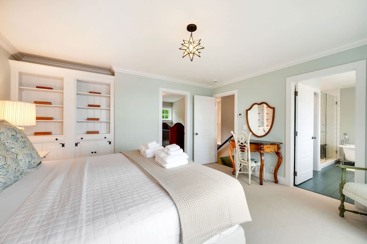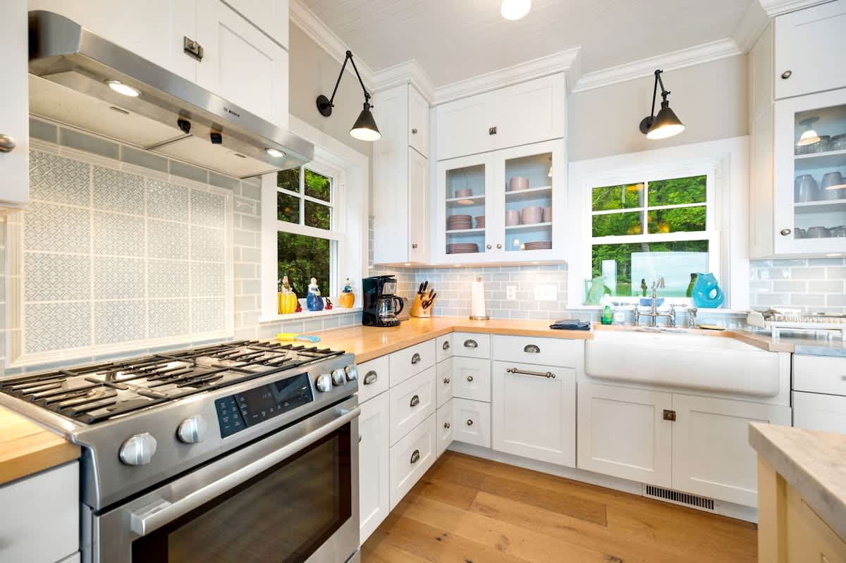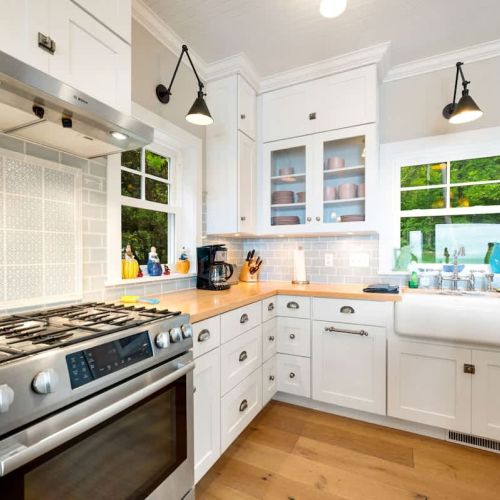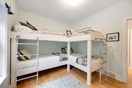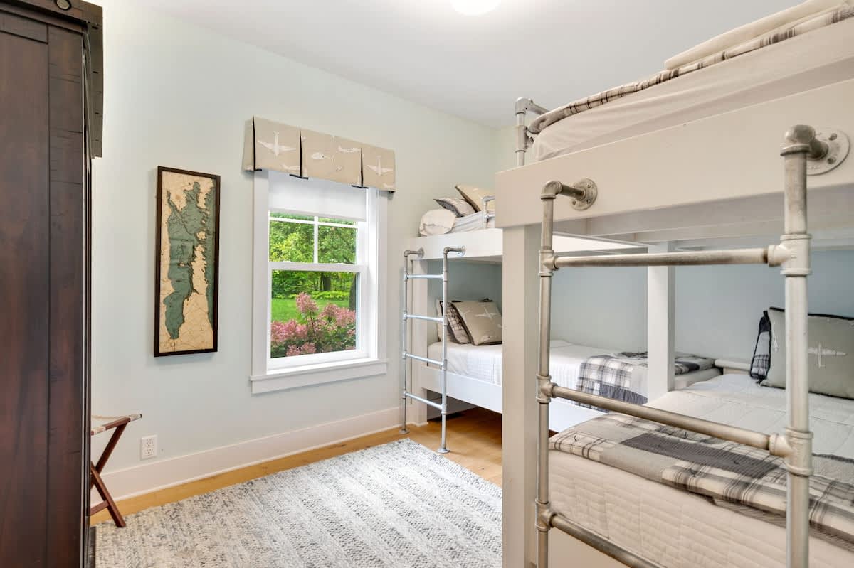 Two bathrooms ensure convenience for groups and families. Classic interiors with oak floors and bead board ceilings create a warm and welcoming feel, while modern updates provide comfort and ease.