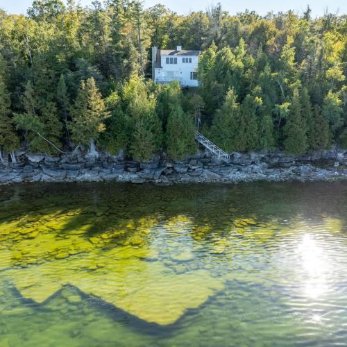 Welcome to the Garrett Bay Cottage, a timeless 3-bedroom, 2-bathroom retreat overlooking Garrett Bay in Door County, WI. This reimagined classic blends coastal charm with modern comfort, offering families, couples, or friends a peaceful getaway at the tip of the peninsula. Enjoy the privacy of over 3 acres at the end of a cul-de-sac, while still being a short drive to local shops, restaurants, and attractions.