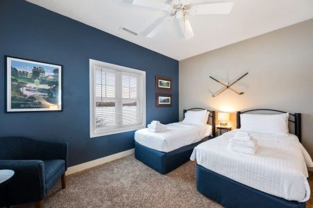 Club Cottage #2 is an upper level unit and boasts one king bedroom, two twin beds in the other bedroom, and 2 en suite bathrooms, with queen-sized pull out couch for additional guests. Please note that the twin beds can be pushed together to form a king-sized bed. Enjoy amenities such as indoor fireplace, jacuzzi tub, in-unit washer and dryer and a well-stocked kitchen for all you need to prepare small meals and snacks. Enjoy views of the grounds and outdoor seating on your own private deck/patio.