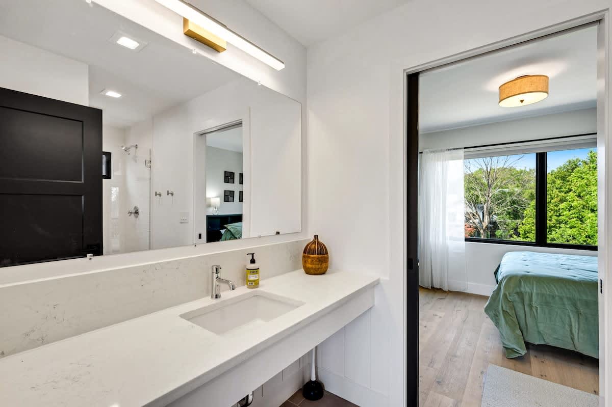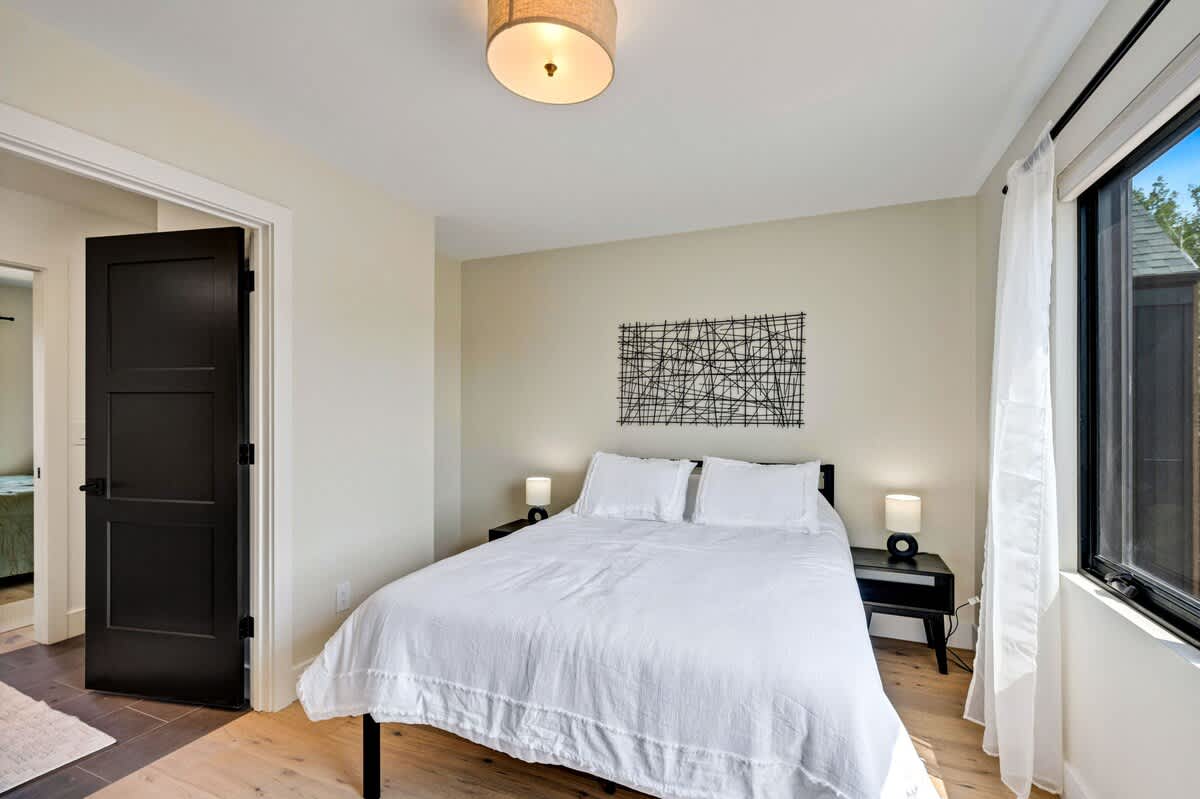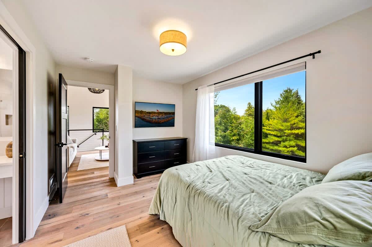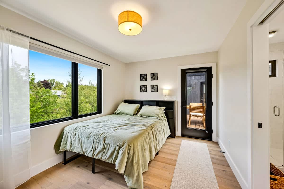 Introducing the Nordica Loft, a stylish retreat located above the garage of the main home. Located in the heart of Egg Harbor, this separate apartment offers 2 bedrooms and one bathroom, providing a private and comfortable space. Connected to the main house by an upper breezeway and deck, the loft is rented separately, ensuring privacy and exclusivity. Experience contemporary elegance with modern furnishings, fast WiFi, a well-equipped kitchenette, and a cozy seating area.