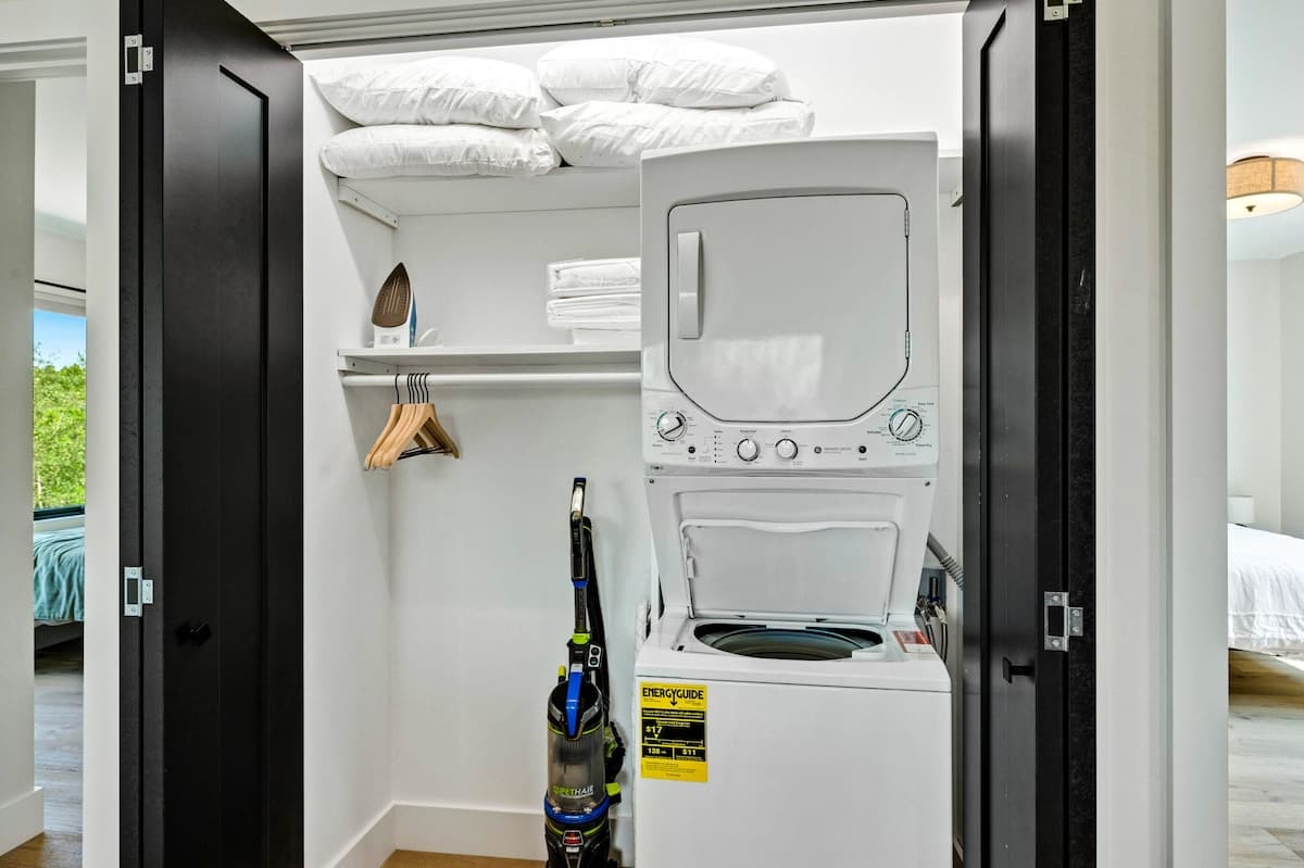For added comfort, all doors and windows facing the other unit are equipped with privacy blinds, allowing you to relax undisturbed in this secluded retreat. Additionally, the availability of a washer and dryer ensures convenience during your stay.