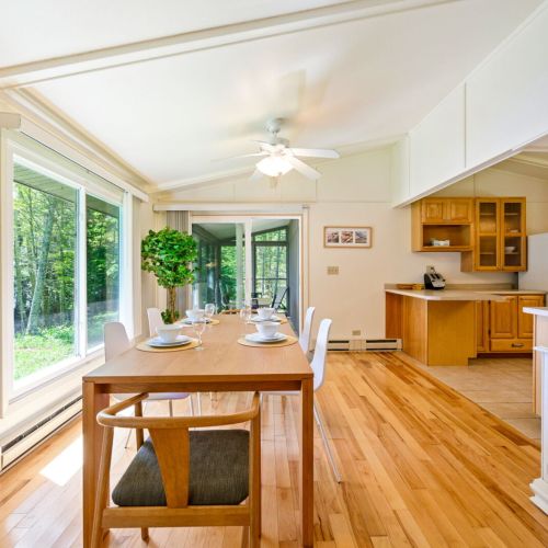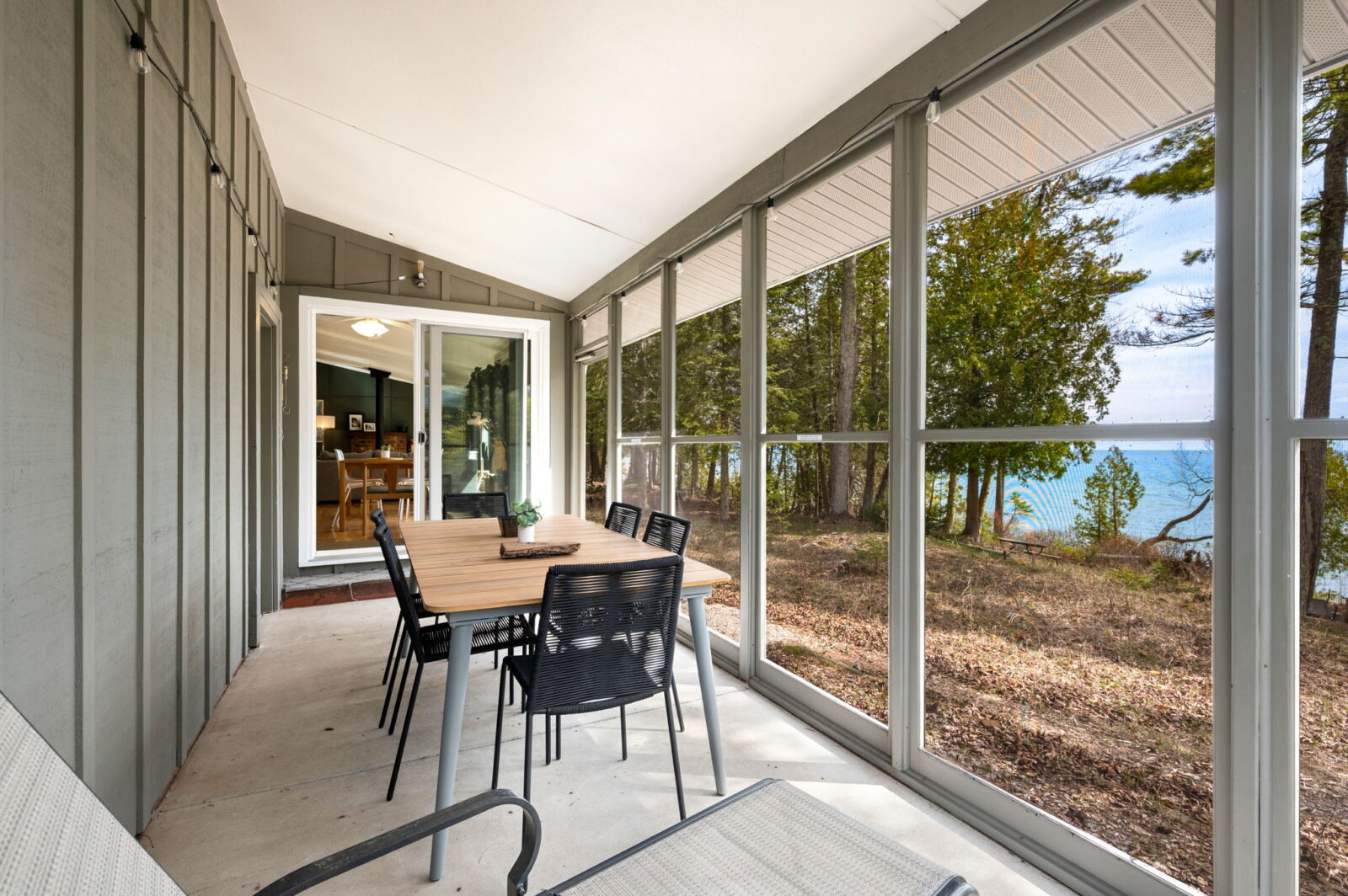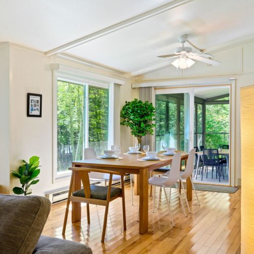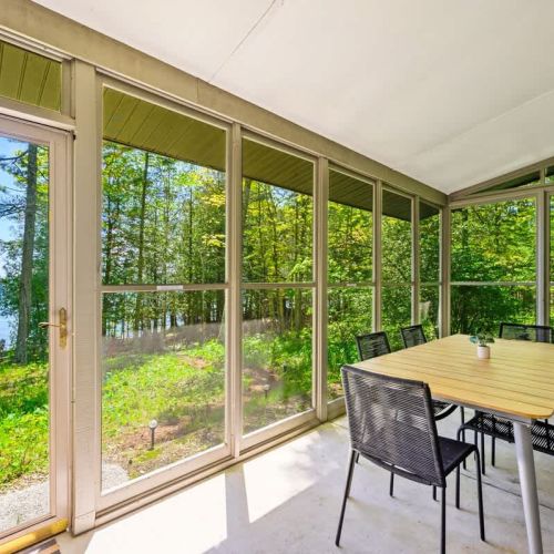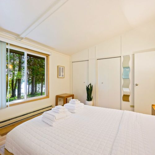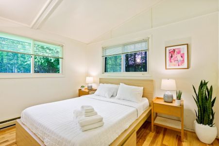This cabin does not have air conditioning. Typically, the gentle breezes off Lake Michigan and the lush surrounding woods keep the home refreshingly comfortable even on warm summer days. However, during rare stretches of unusually warm weather, staying over may feel warmer than usual.