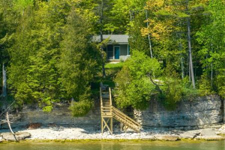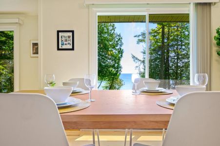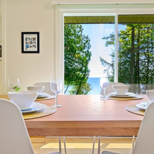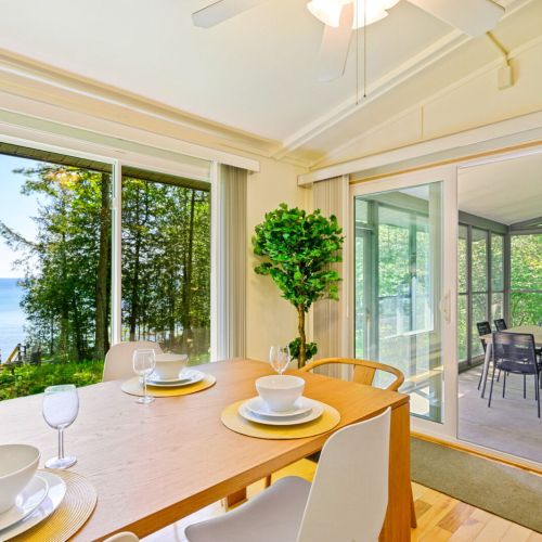 Peaceful lakefront cabin near Jacksonport, newly refreshed with updated furnishings, hardwood floors, and renovated bath. This 3BR retreat sleeps 5 and features a cozy open layout, high-speed WiFi, smart entry, and large windows with lake views. Enjoy wooded privacy, direct access to Lake Michigan, and a location minutes from parks, beaches, and Door County favorites like Whitefish Dunes and Cave Point.
