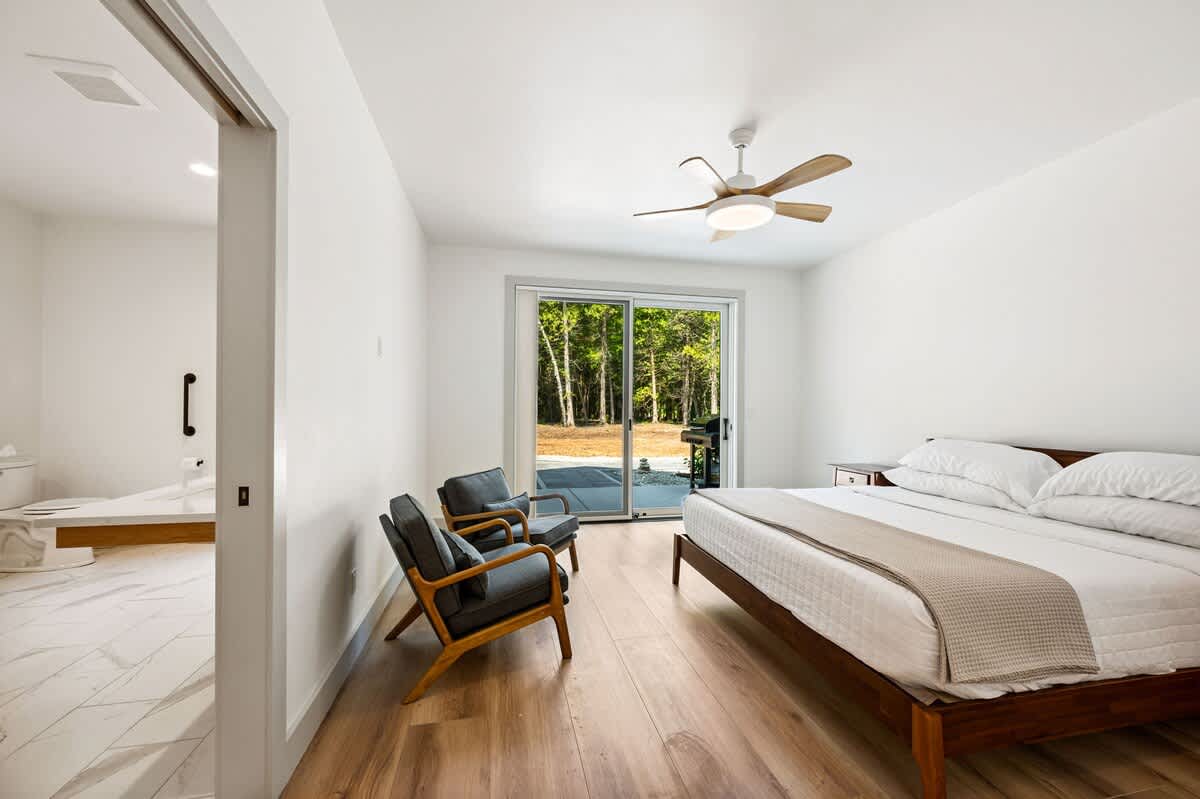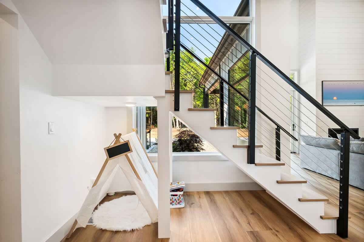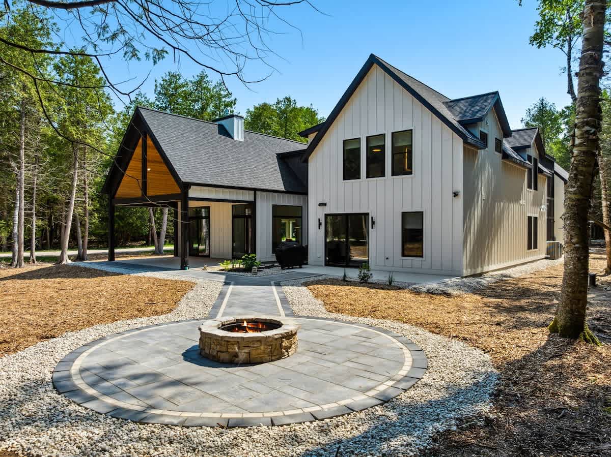 Welcome to The Point in Egg Harbor, WI- a brand-new, luxurious 9-bedroom, 6-bathroom retreat nestled in a peaceful, mature neighborhood just moments from the water. Featuring contemporary Scandinavian design, it’s the perfect escape for large families, multi-generational trips, or group getaways. With a spacious patio, fire pit, EV charger, and elevated finishes throughout, Point Beach offers comfort, connection, and relaxation in the heart of Door County.