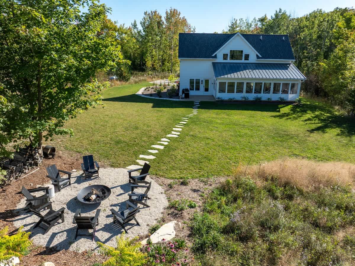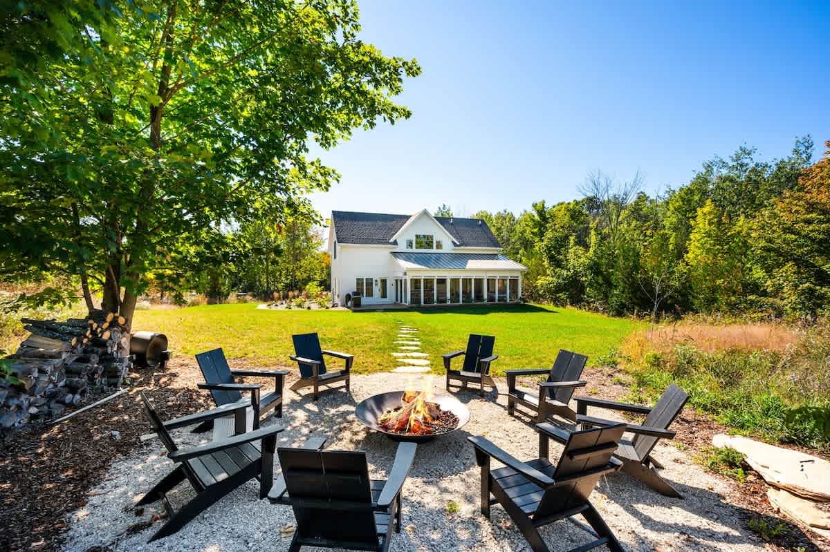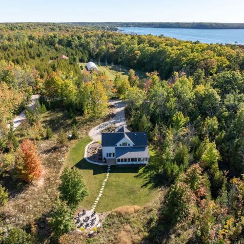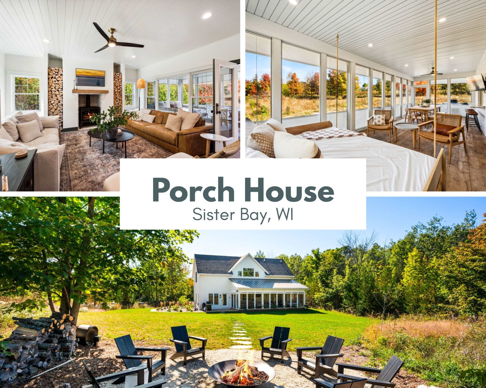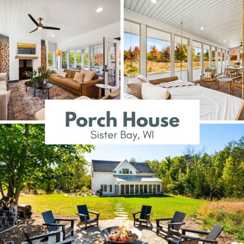 The Porch House in Sister Bay, WI, is a luxurious 3-bedroom, 2.5-bath retreat on 2.5 secluded wooded acres, just 2 miles from downtown. With a screened-in porch, gourmet kitchen, spa-like bathrooms, and high-speed internet, it’s perfect for relaxing or entertaining. Walking distance to local favorites like the Ice Cream Factory, this design-forward home offers the ideal blend of nature and convenience.