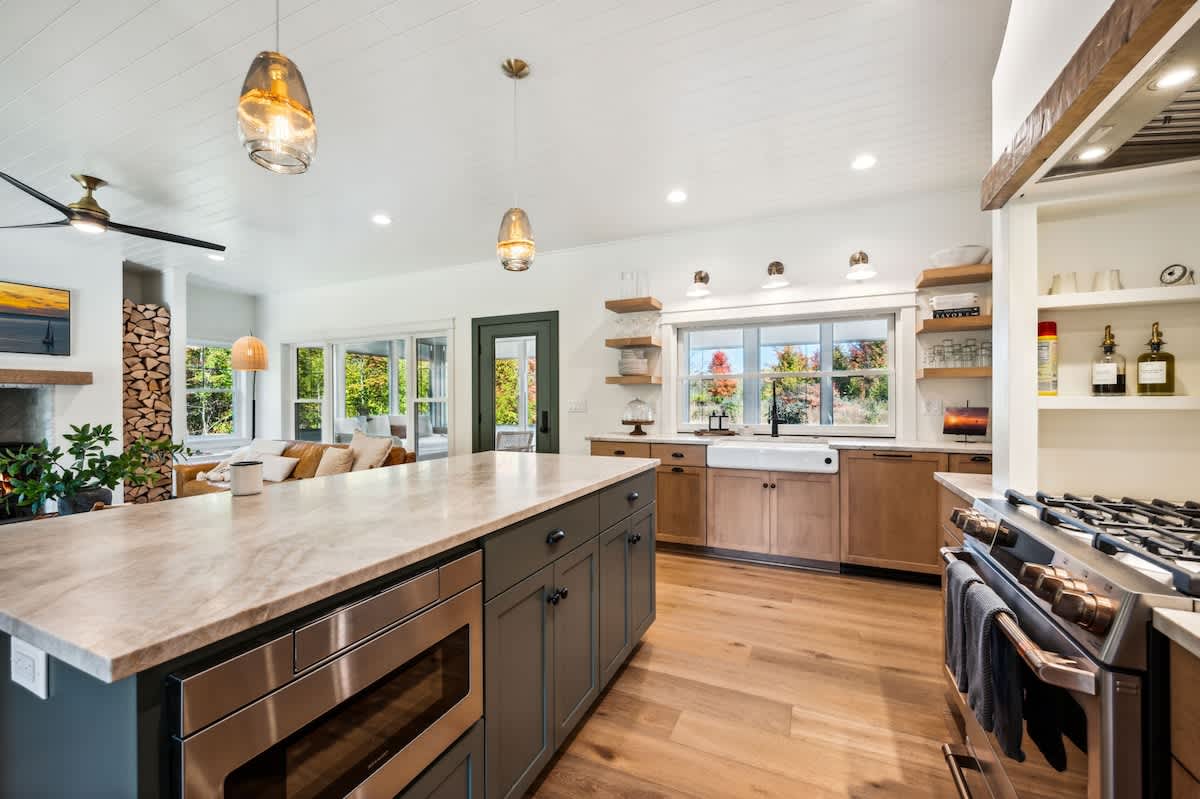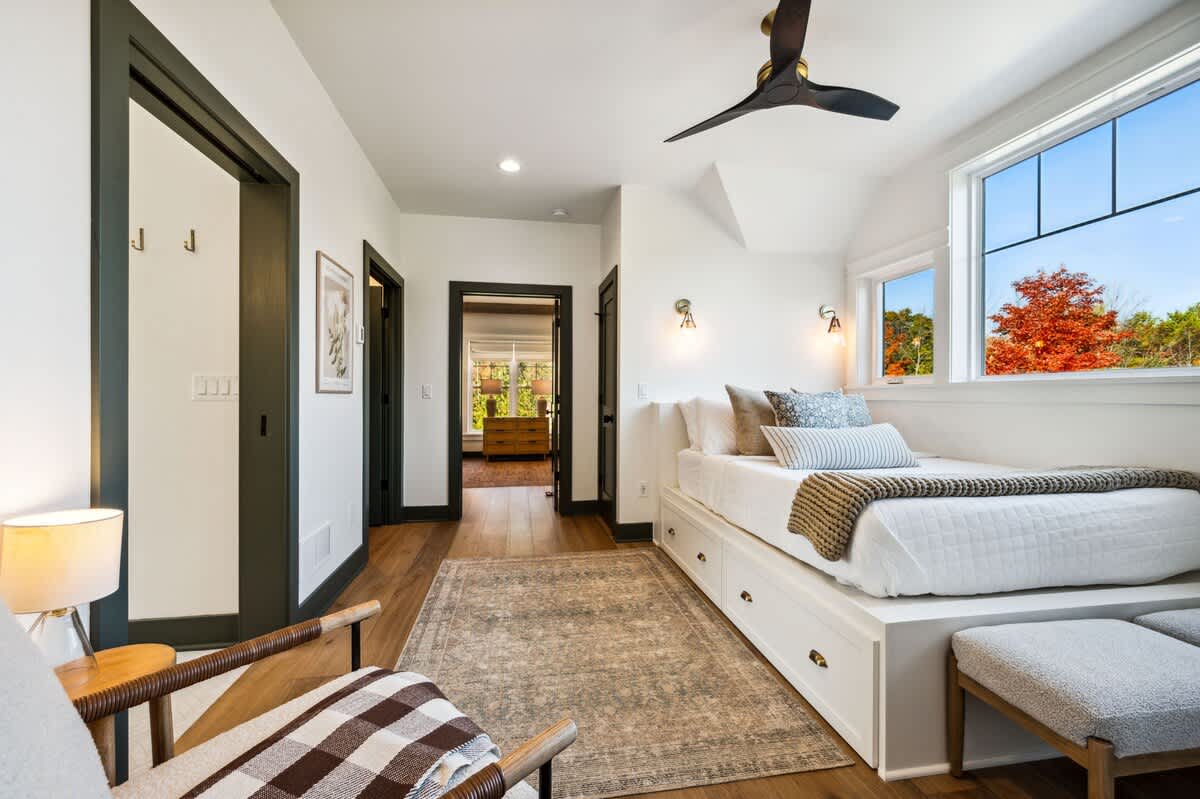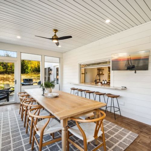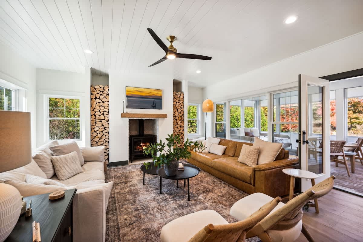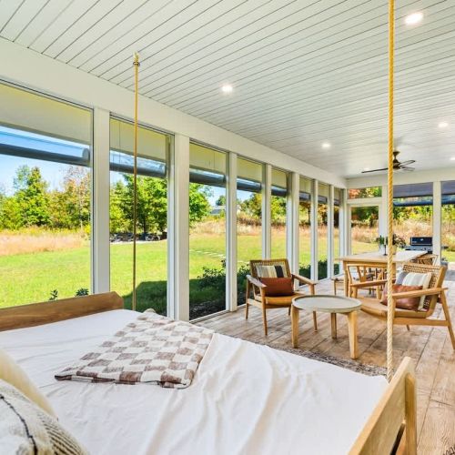 The Porch House in Sister Bay, WI, is a luxurious 3-bedroom, 2.5-bath retreat on 2.5 secluded wooded acres, just 2 miles from downtown. With a screened-in porch, gourmet kitchen, spa-like bathrooms, and high-speed internet, it’s perfect for relaxing or entertaining. Walking distance to local favorites like the Ice Cream Factory, this design-forward home offers the ideal blend of nature and convenience.